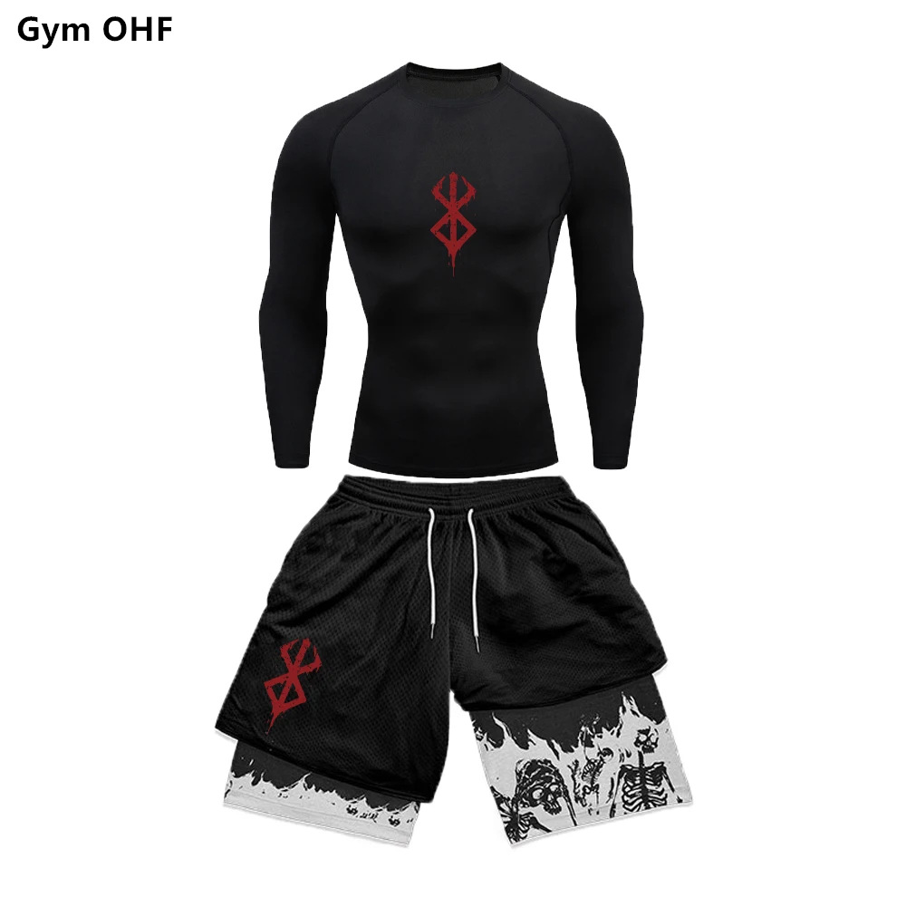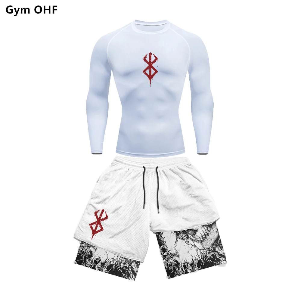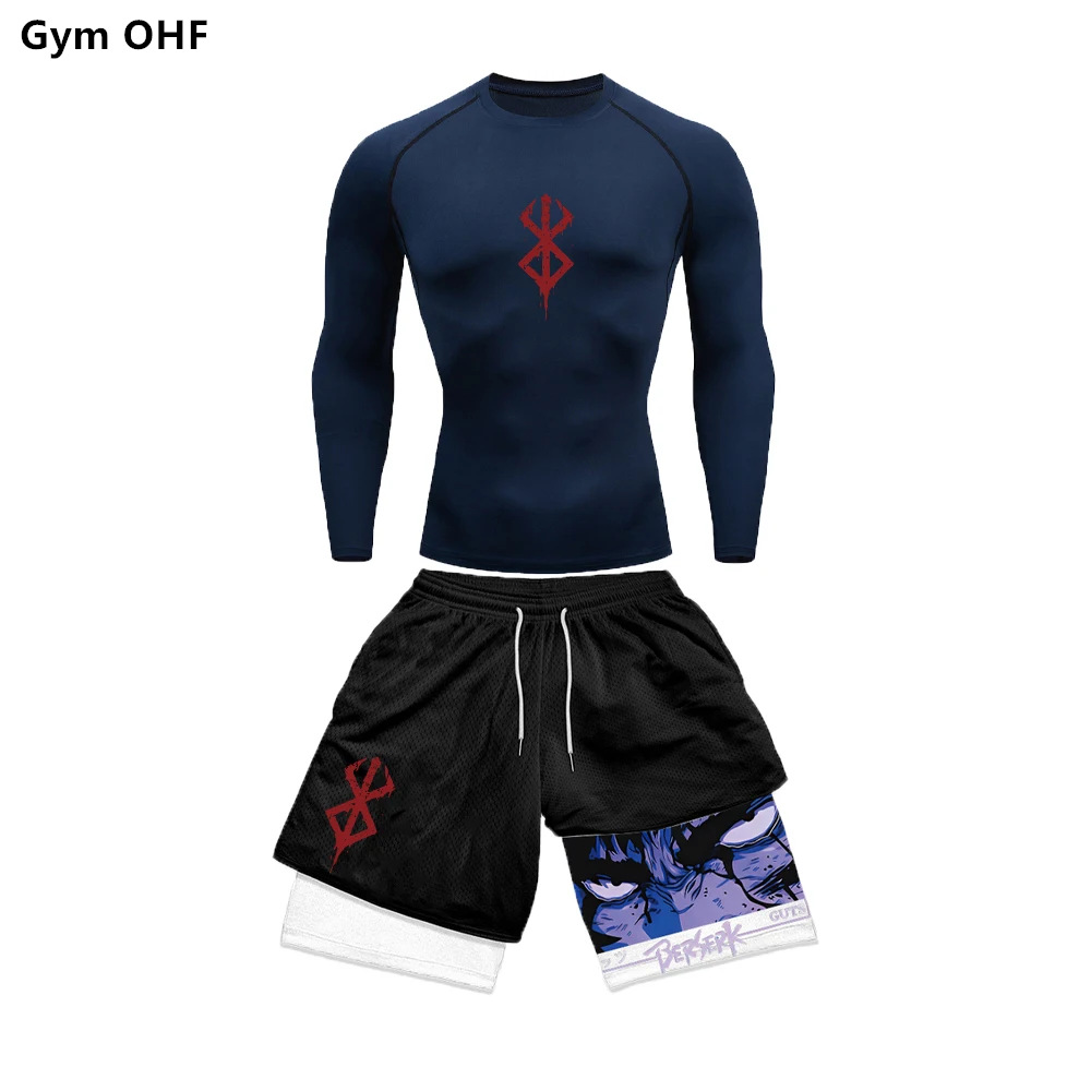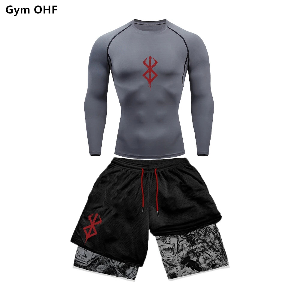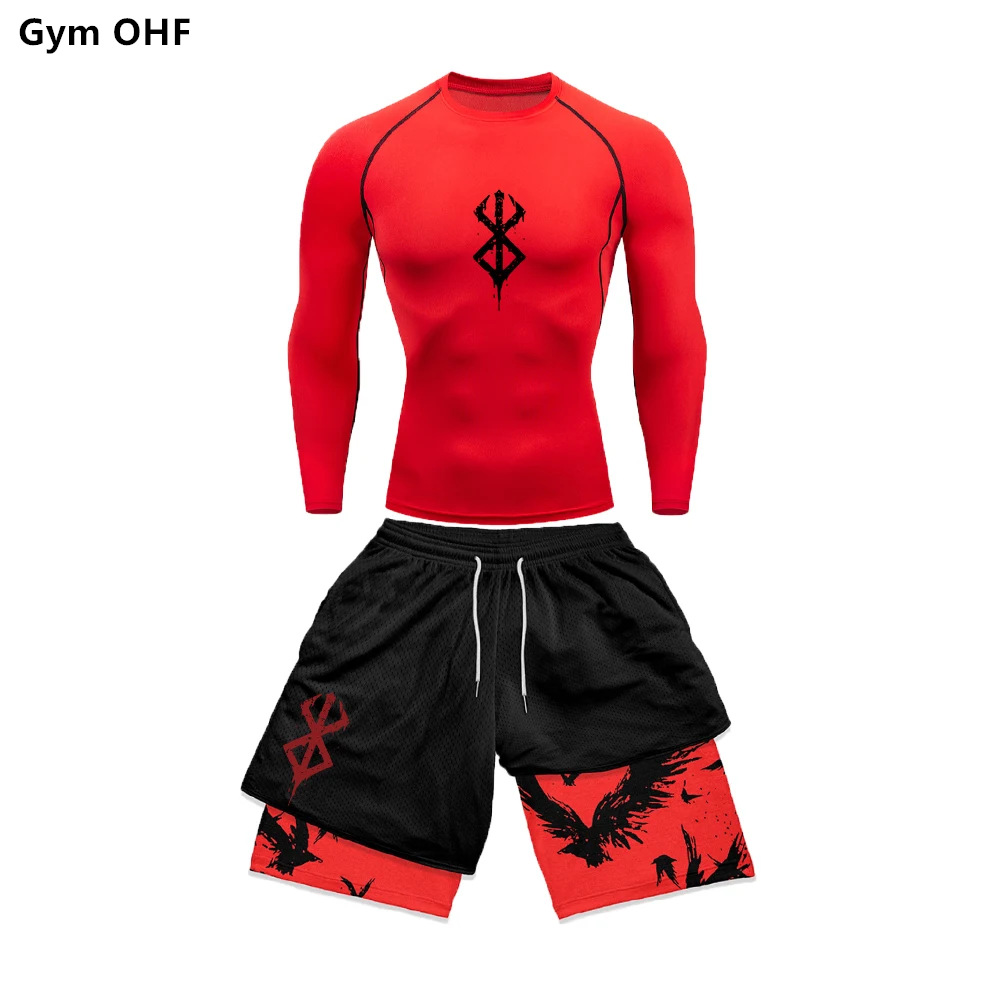 AliExpress 국경 남성 티셔츠 3D 디지털 인쇄 더블 레이어 반바지 2 피스 빠른 건조 러닝 트레이닝 세트