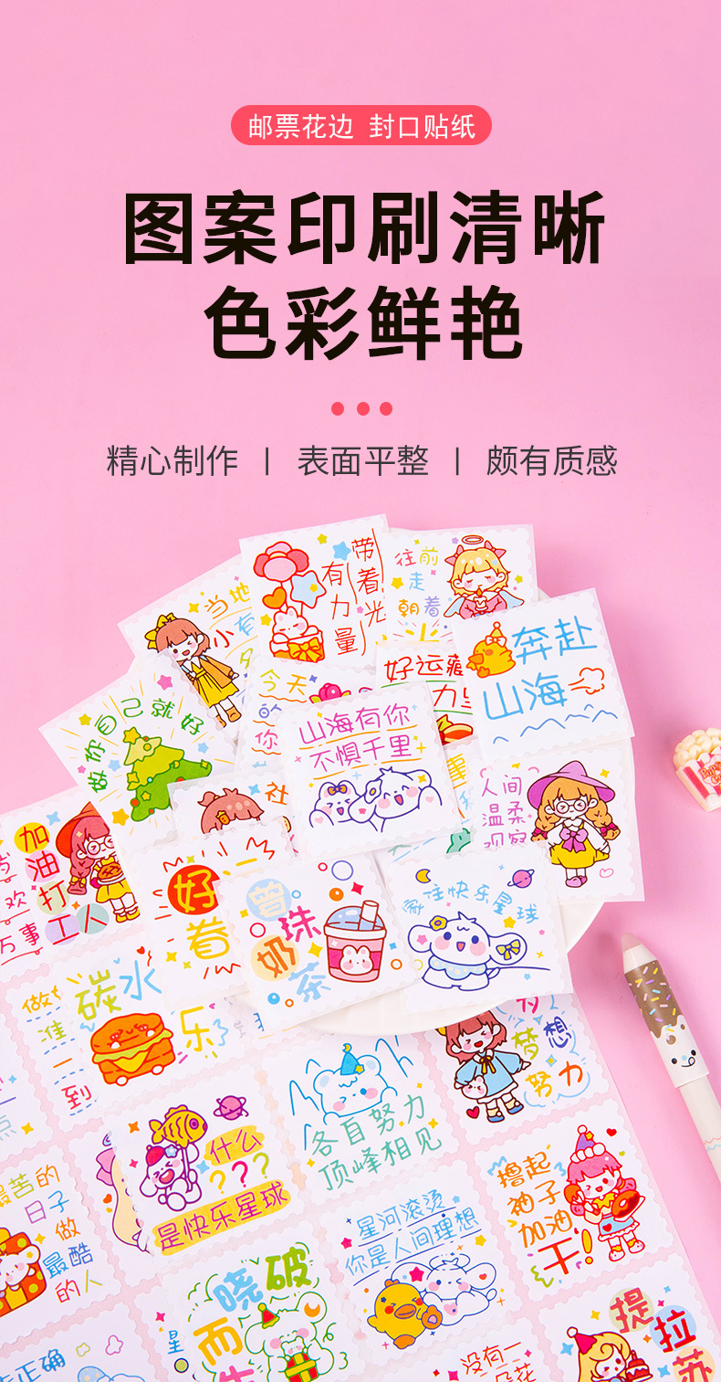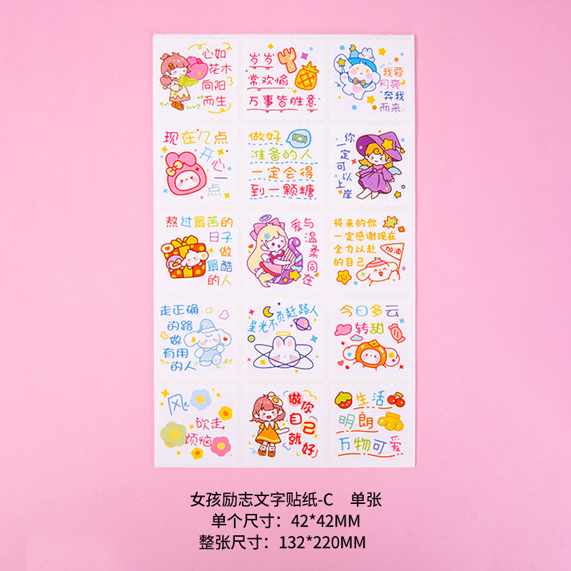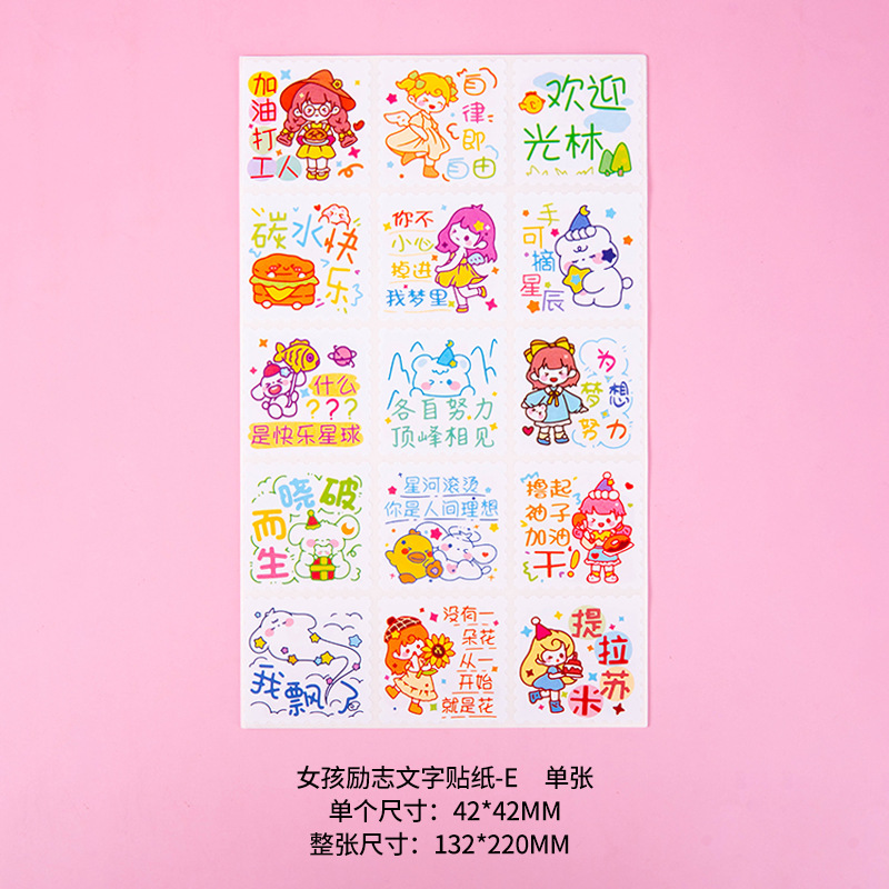 • 피트 백 스탬프 사이드 소녀 영감 텍스트 스티커-E 리플릿