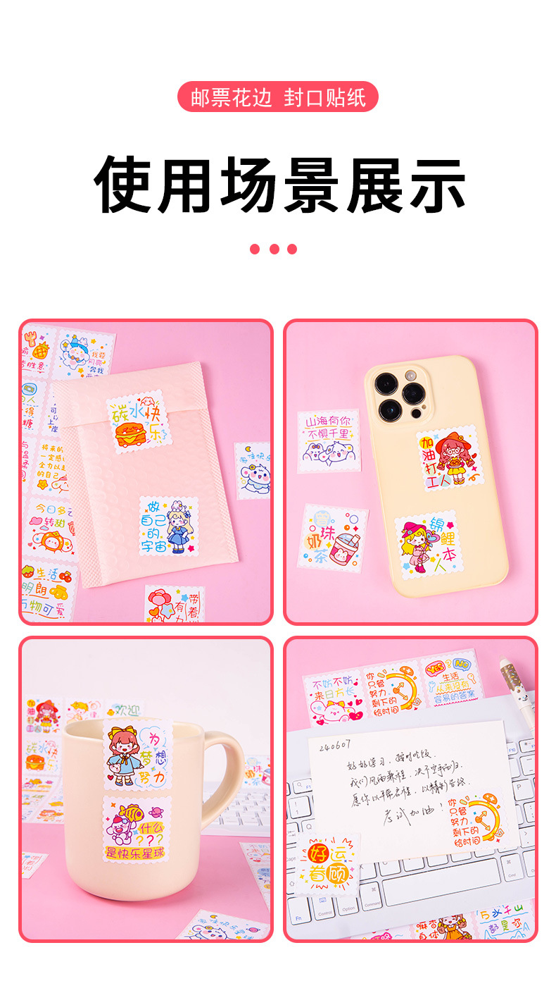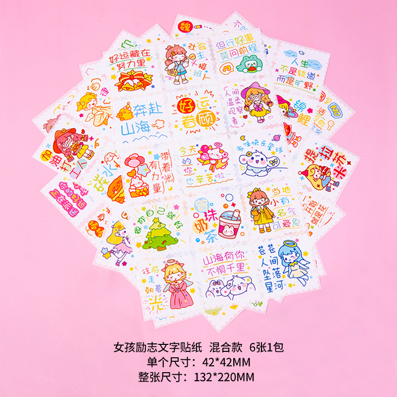 • 피트 백 스탬프 사이드 소녀 영감 텍스트 스티커-6 혼합 1 팩