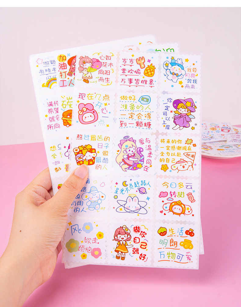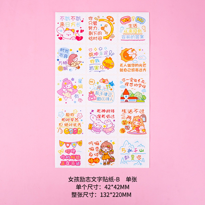 • 페이퍼 백 스탬프 사이드 소녀 영감 텍스트 스티커-B 리플릿