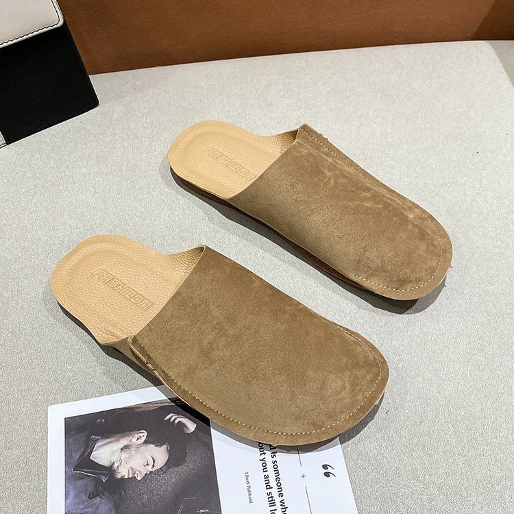 부드러운 바닥 Baotou 하프 슬리퍼 여성 아우터 2024 봄과 가을 새로운 패션 샌들 캐주얼 플랫 패셔너블 버켄 네스 신발