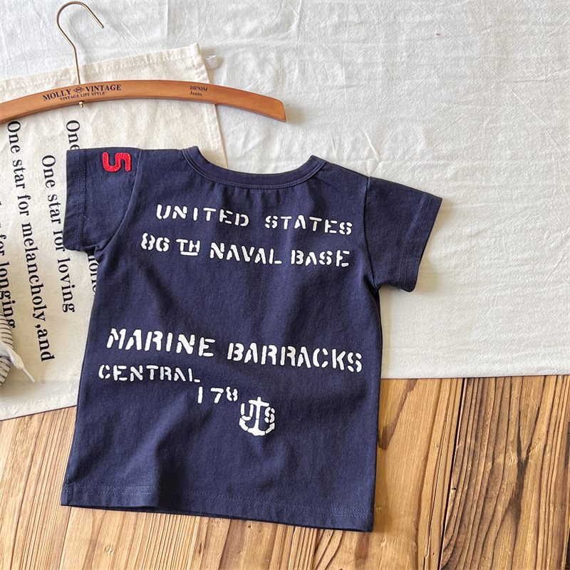 [재고] 일본 아동복 미들 DD 여름 어린이 반팔 선원 편지 티셔츠