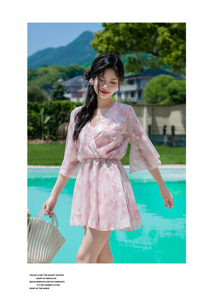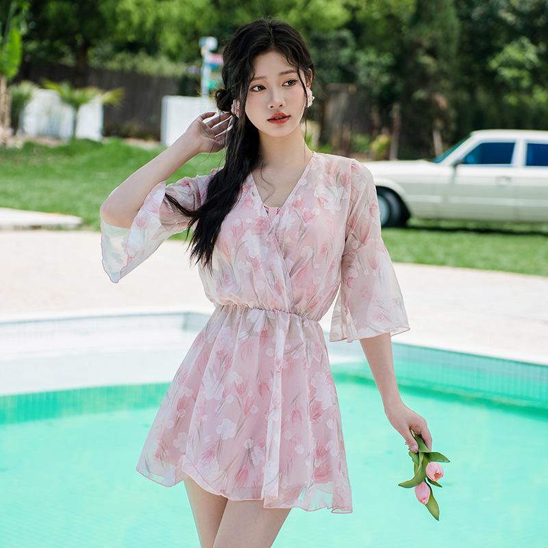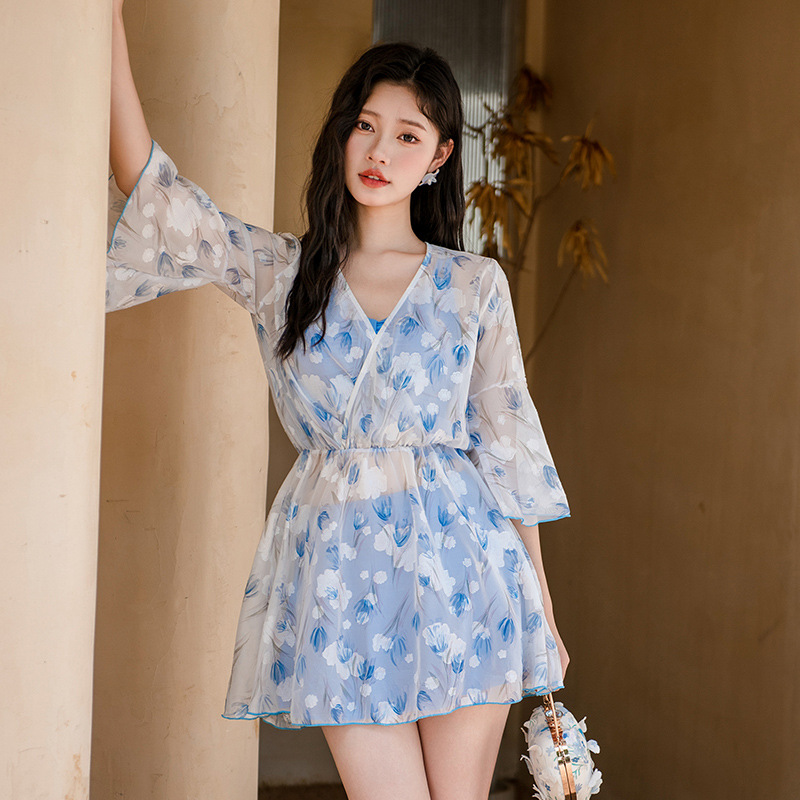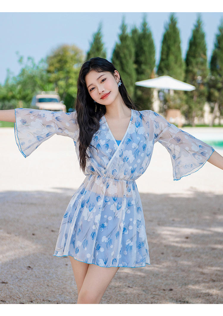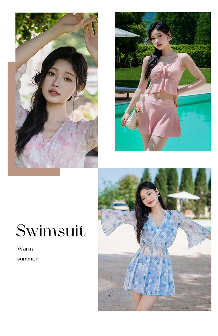 비키니 3 피스 수영복 여성의 보수적 인 작은 향기로운 스타일 작은 가슴 푸시 업 슬리밍 벨리 커버 섹시한 한국 분할 온천스토어 가기