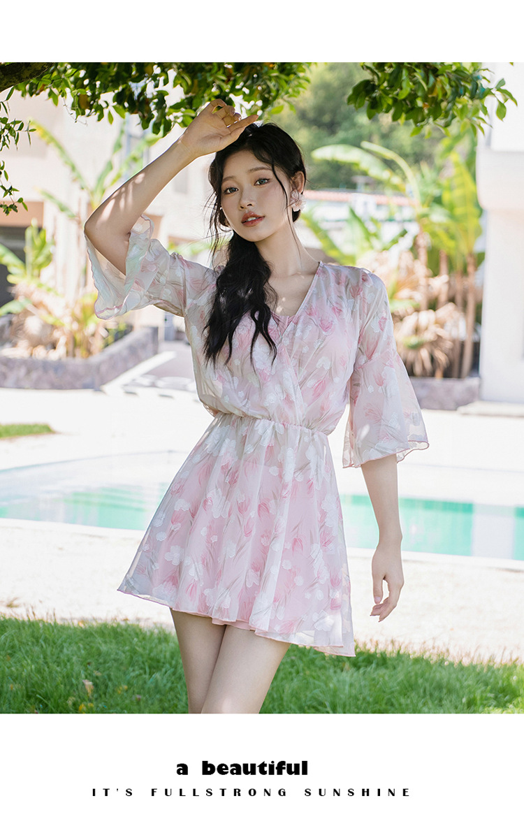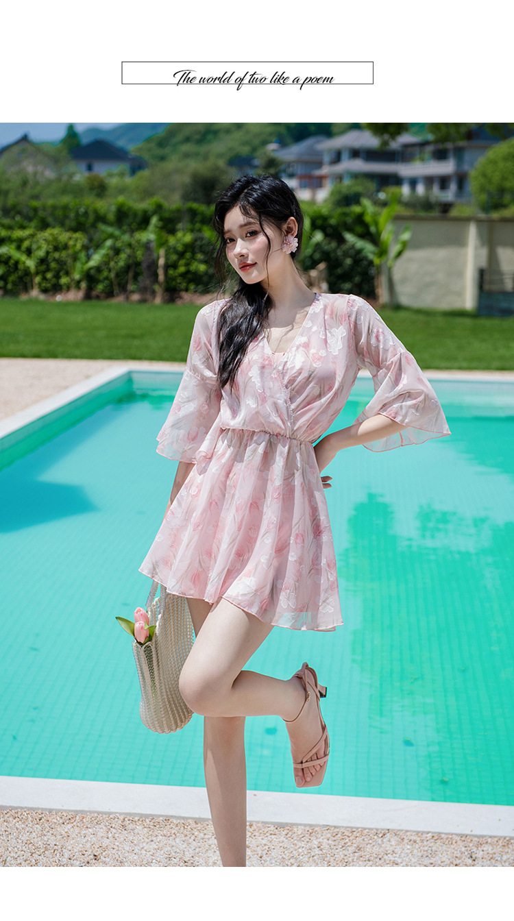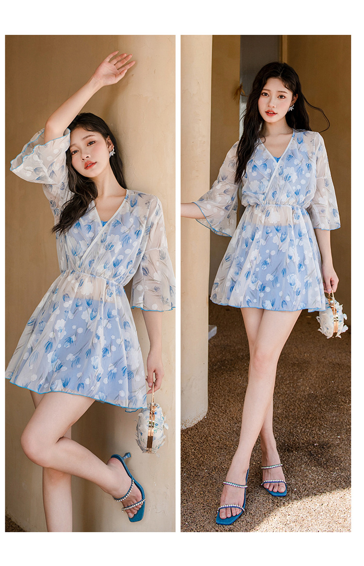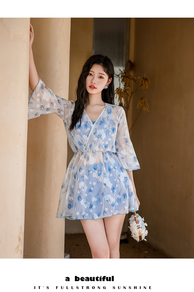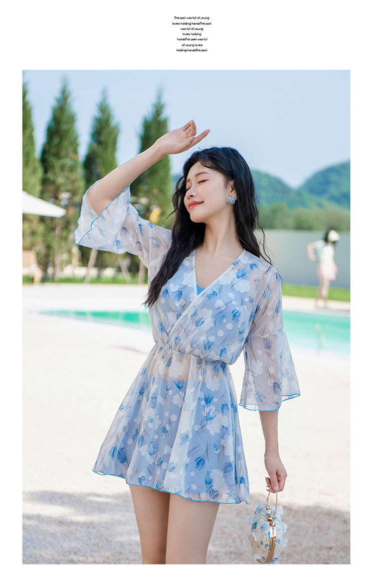 비키니 3 피스 수영복 여성의 보수적 인 작은 향기로운 스타일 작은 가슴 푸시 업 슬리밍 벨리 커버 섹시한 한국 분할 온천스토어 가기