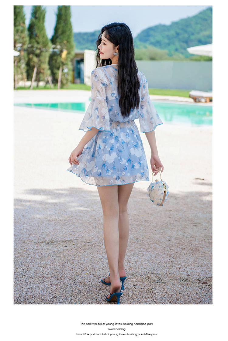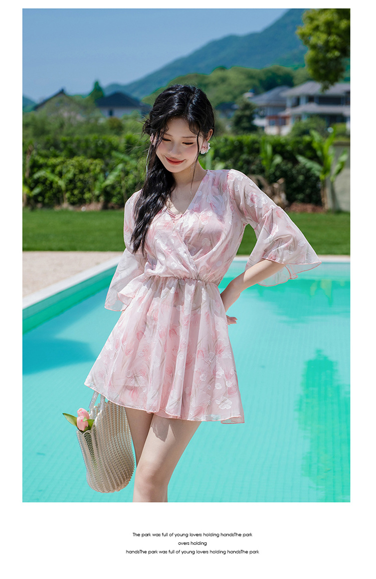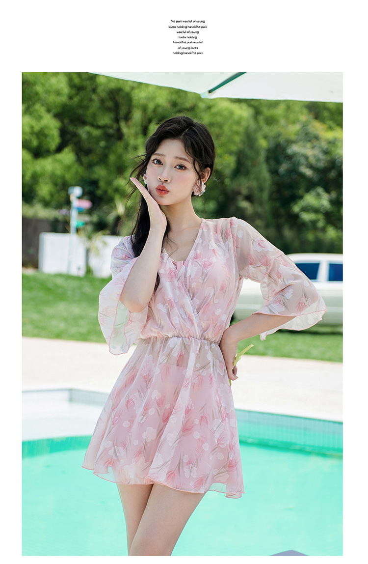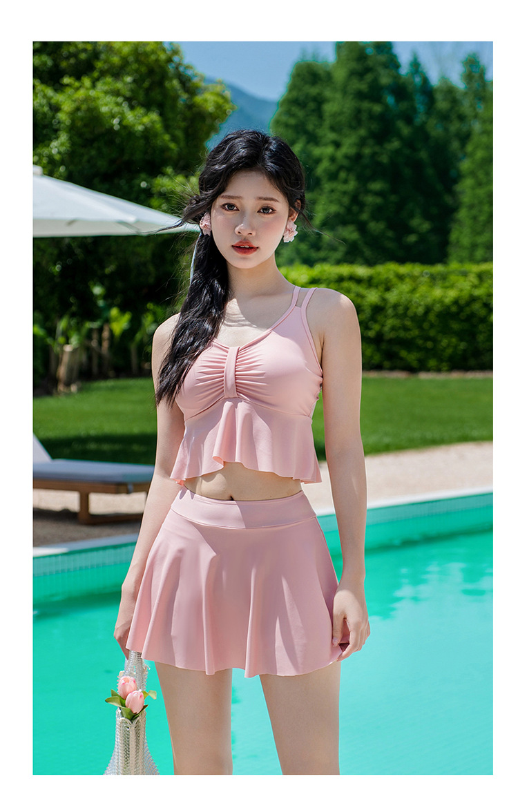 비키니 3 피스 수영복 여성의 보수적 인 작은 향기로운 스타일 작은 가슴 푸시 업 슬리밍 벨리 커버 섹시한 한국 분할 온천