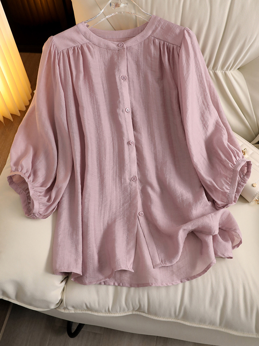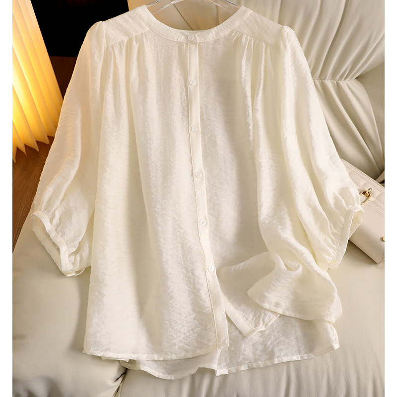 프랑스 하이 엔드 텐셀 셔츠 여성용 슬리밍 라운드 넥 여름 반팔 티셔츠 여성용 최고 경량 통기성 트렌디 셔츠