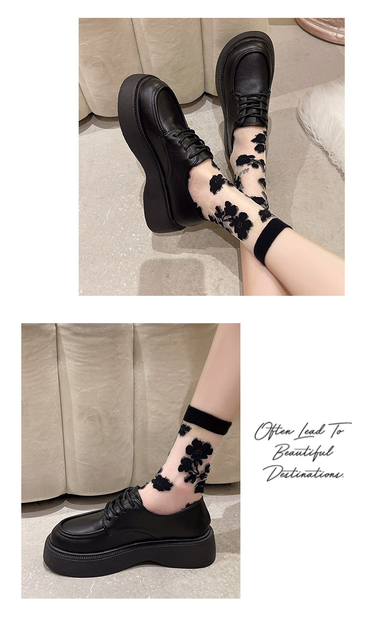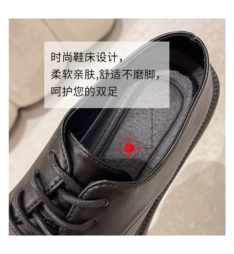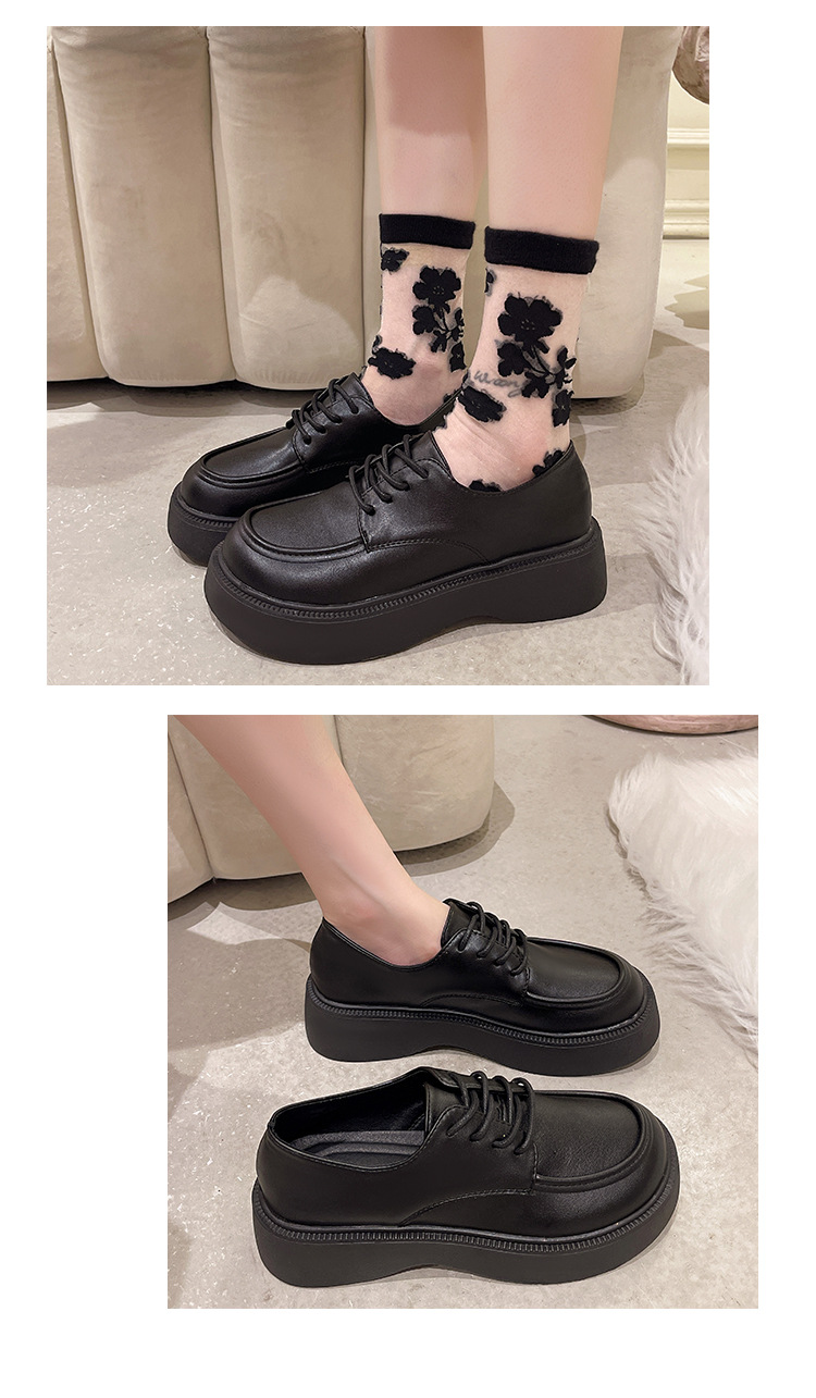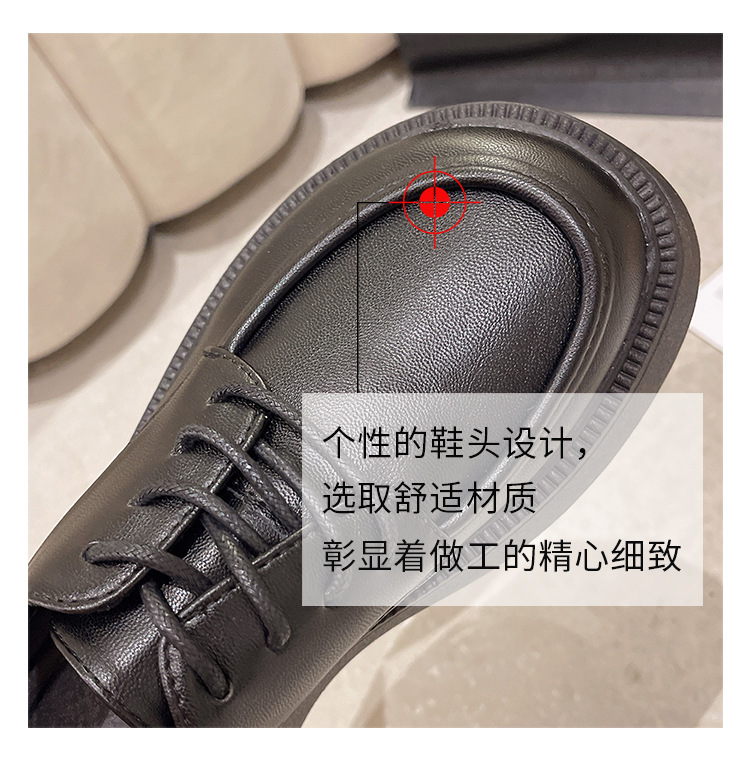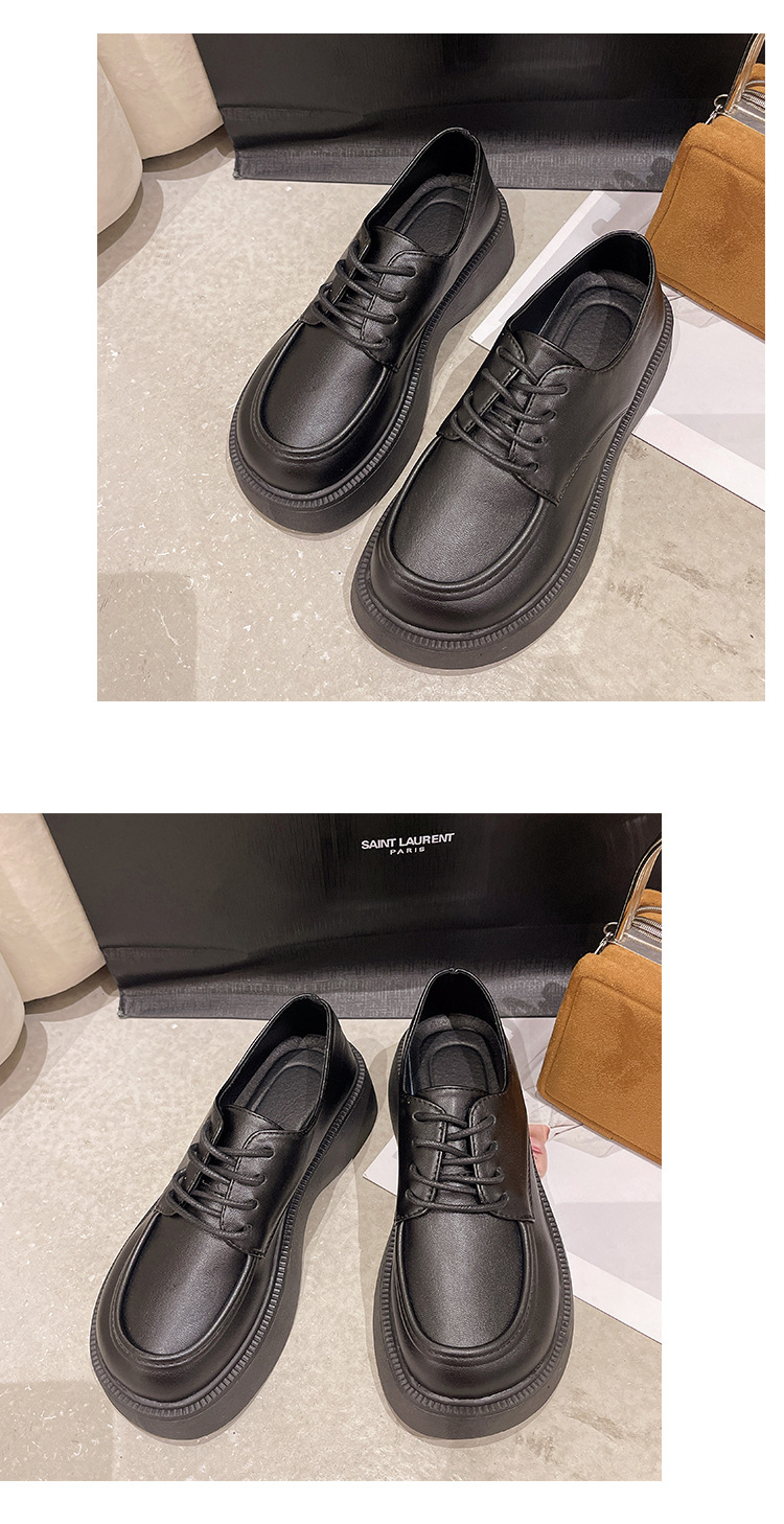 검은 큰 머리 작은 가죽 신발 여성의 새로운 라운드 헤드 레이스 업 영국 아카데미 스타일 플랫폼 신발 봄 2024스토어 가기