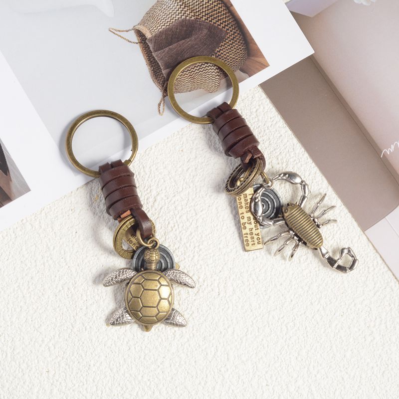창조적 인 키 체인 남성과 여성 작은 선물 합금 귀여운 합금 동물 짠 가죽 키 체인 키 체인