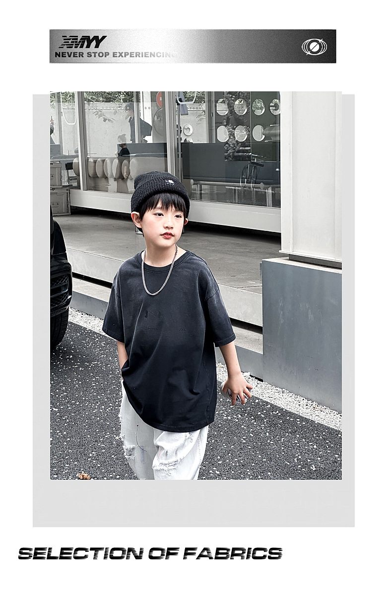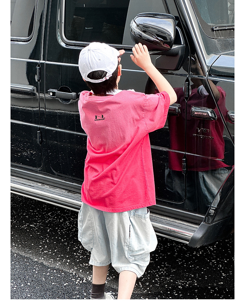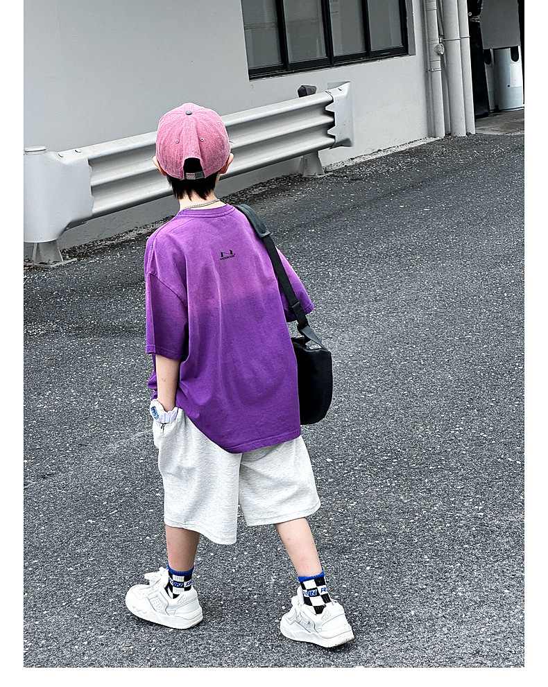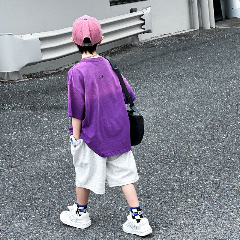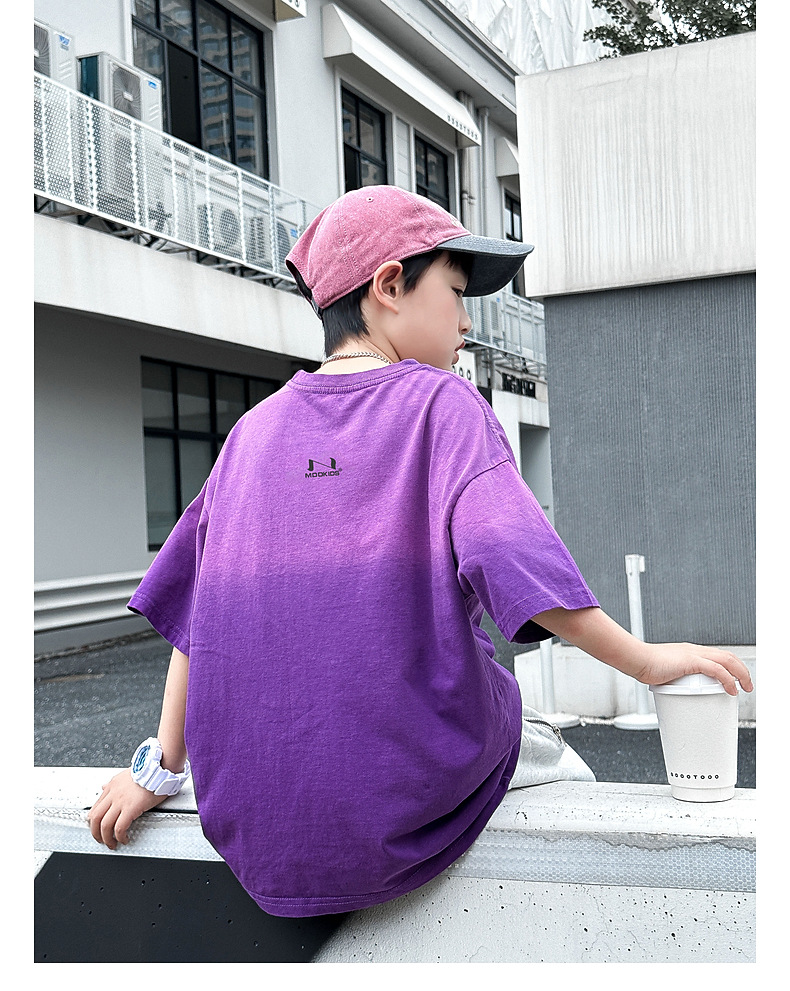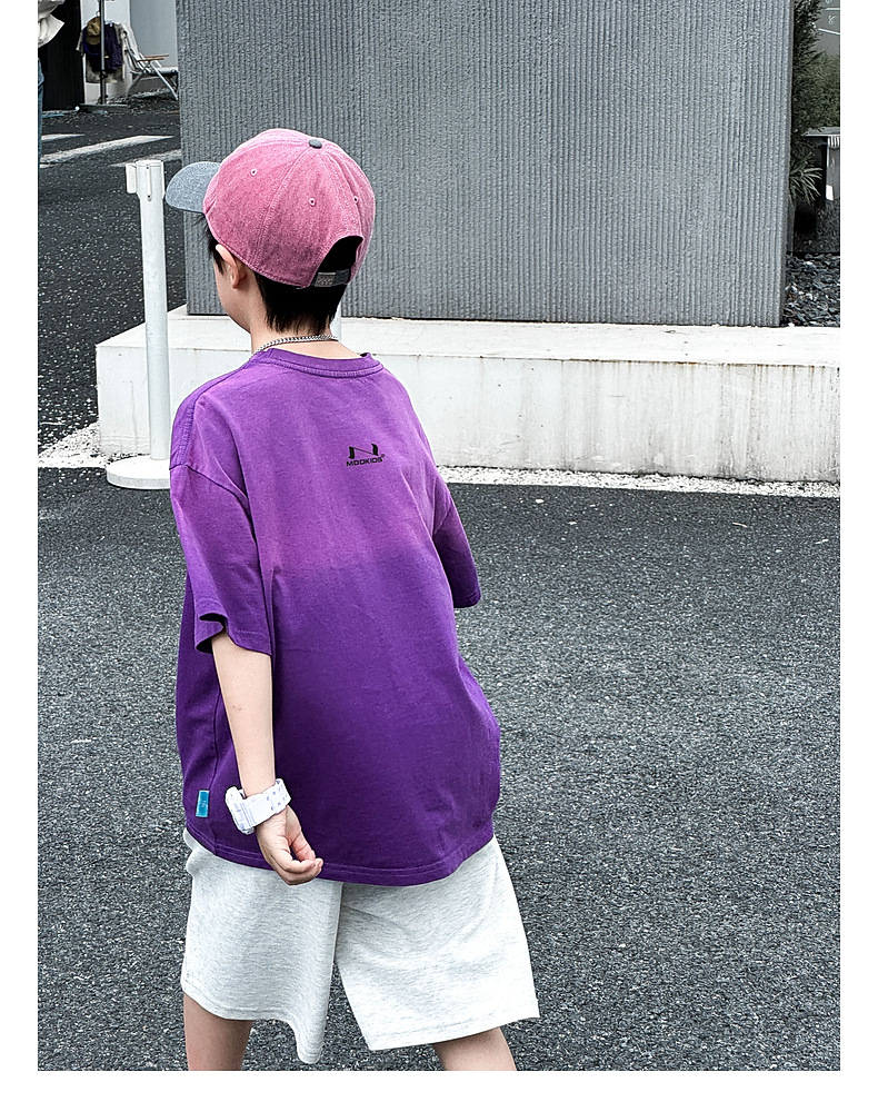 호저우 지리 아동복 트렌디 남아 반팔 순면 2025 여름 신상품 그라데이션 컬러 아동 티셔츠 여름스토어 가기