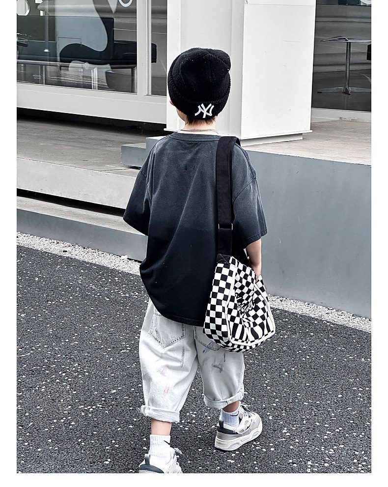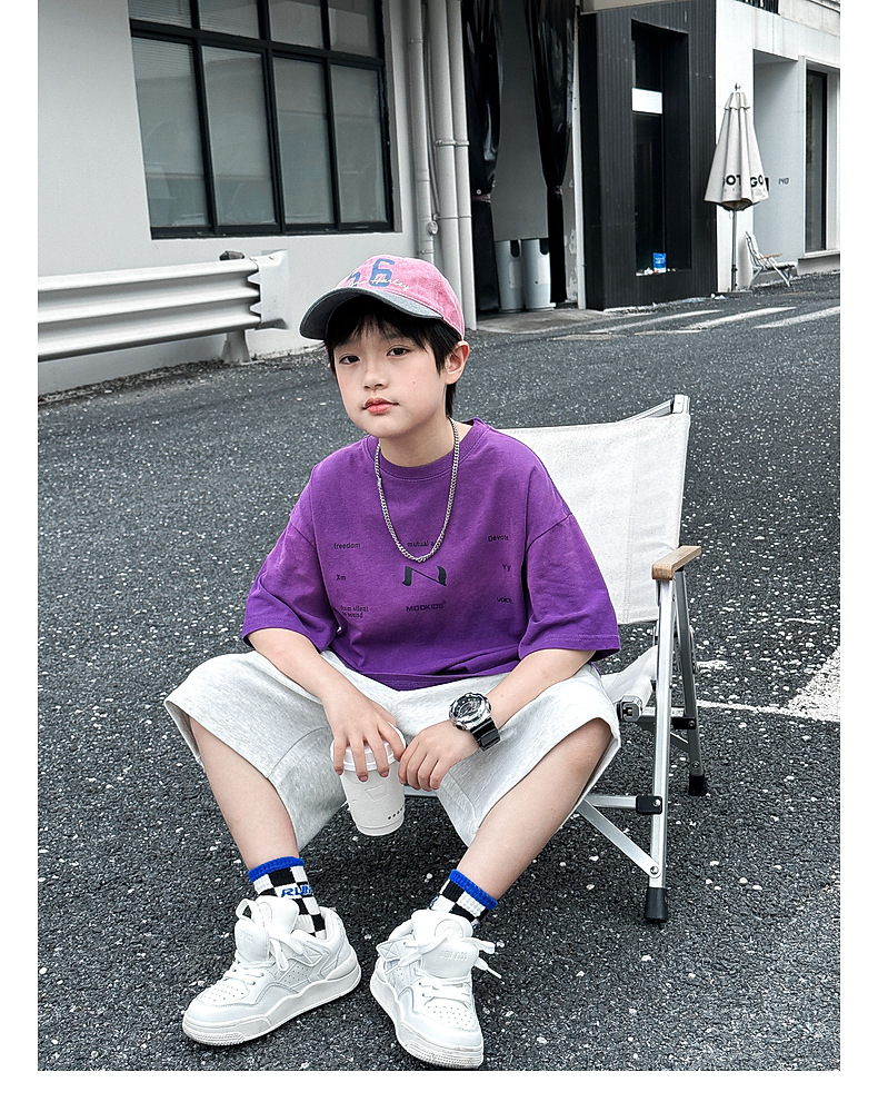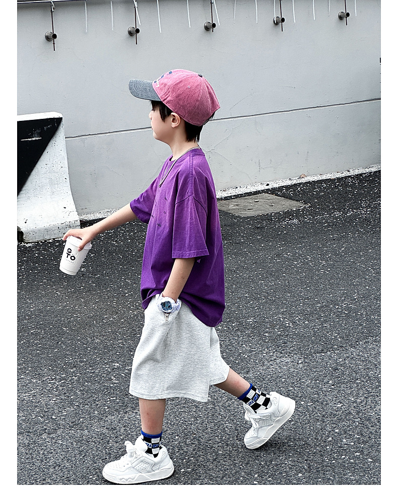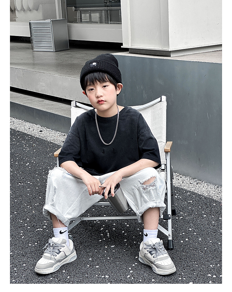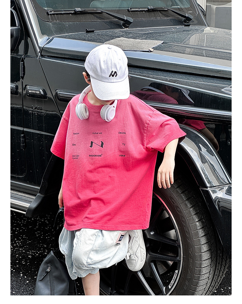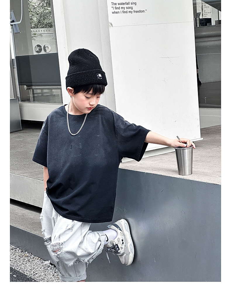 호저우 지리 아동복 트렌디 남아 반팔 순면 2025 여름 신상품 그라데이션 컬러 아동 티셔츠 여름스토어 가기