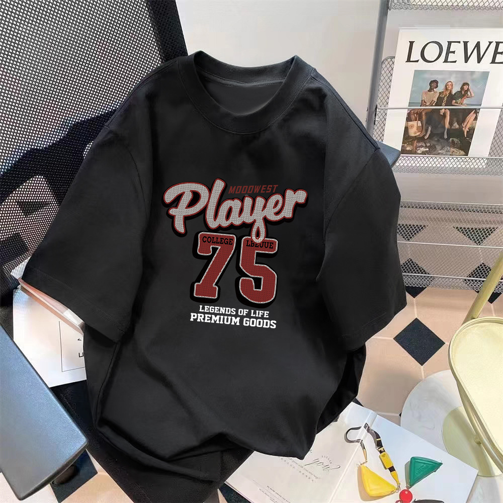 공장 도매 트렌디 한 여름 미국 텍스트 인쇄 패턴 절반 소매 조커 패션 느슨한 둥근 목 상단
