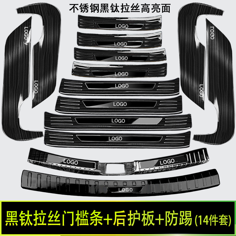 • 19-22 Haoying 도어 실 스트립 + 후면 가드 + 킥 방지 패드 14개 [블랙 티타늄 브러시드]