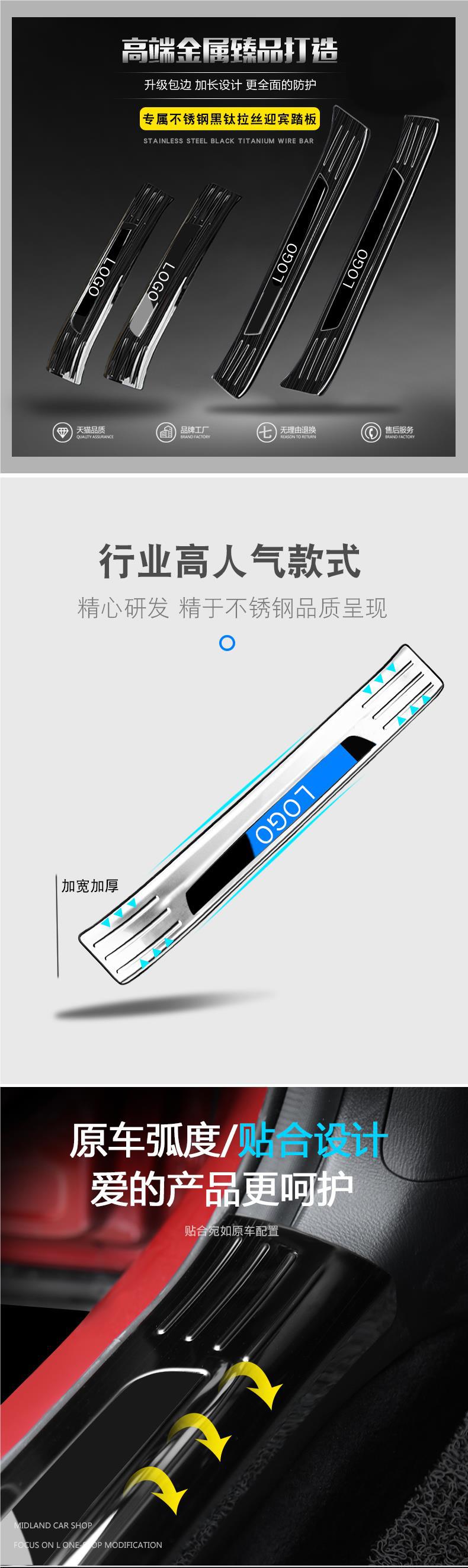 • 23 Haoying 모델 내부 및 외부 임계값 스트립 8개 [실버 블루 라벨]