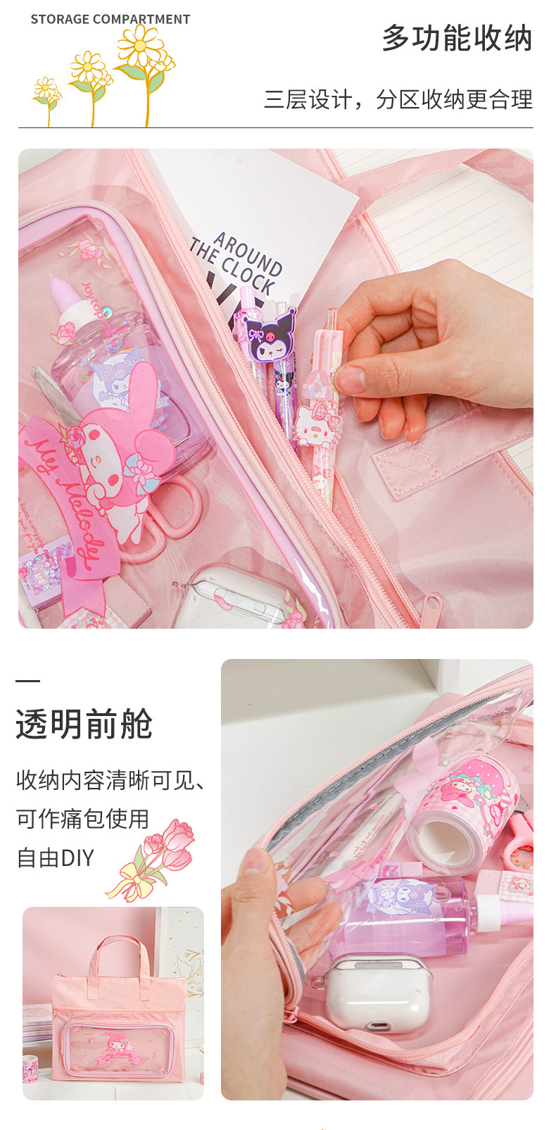 산리오 초등학교 학생 과외 가방 A4 어린이 휴대용 책 가방 소녀 소년 과외 수업 가방 캔버스 가방