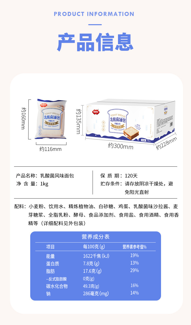 후시도 젖산 박테리아 맛 샌드위치 토스트 1kg 전체 상자 조식 영양 호밀 대체 빵 간식스토어 가기