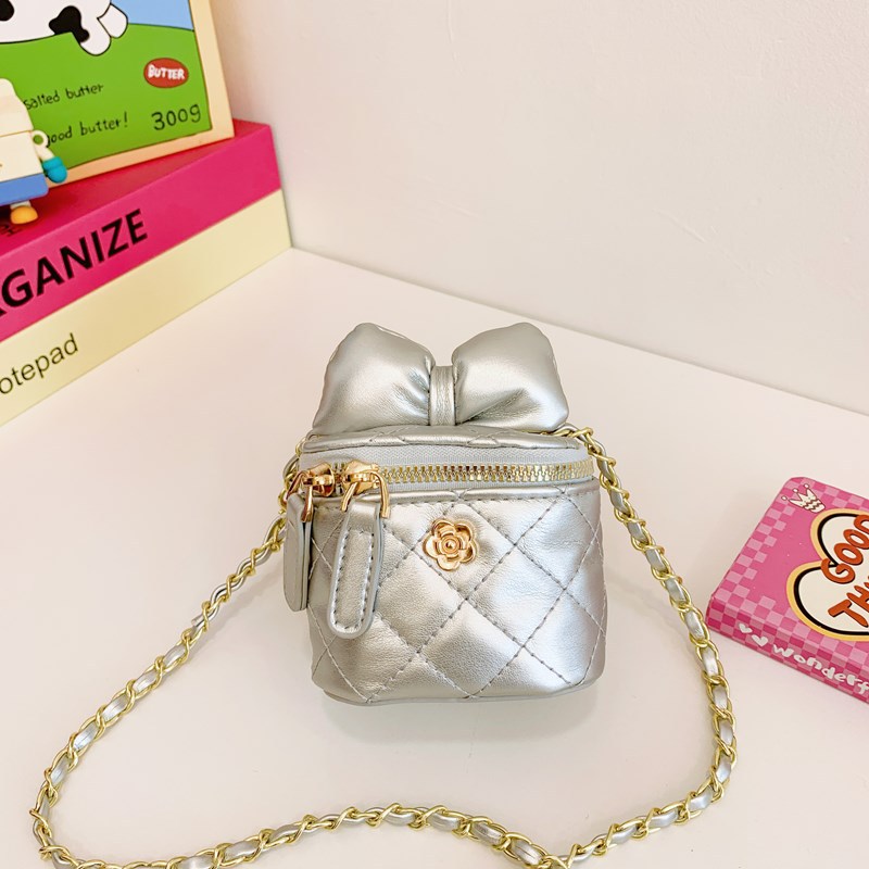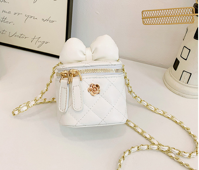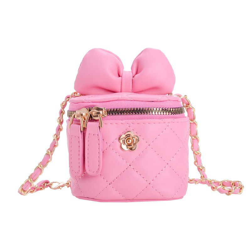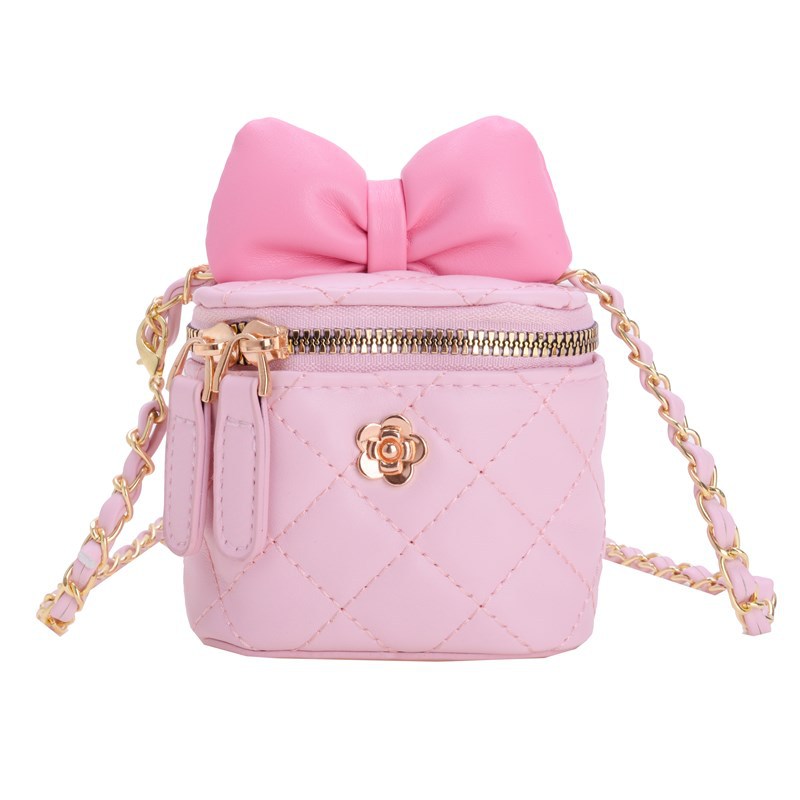 어린이 가방 2024 새로운 스타일 샤넬 스타일 자수 미니 버킷 가방 귀여운 활 체인 크로스 바디 백 레드 백