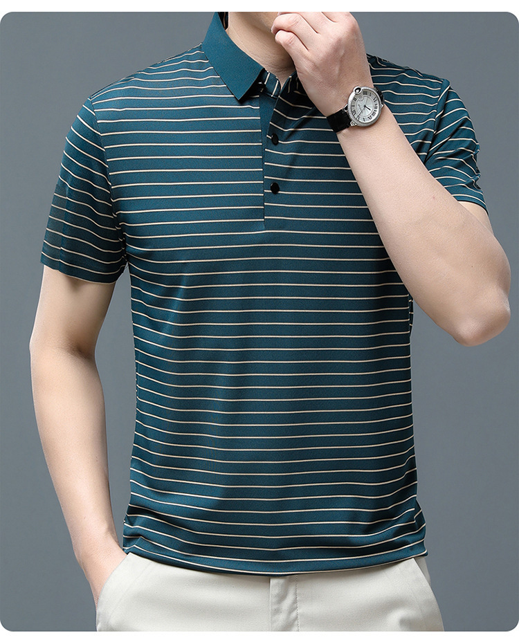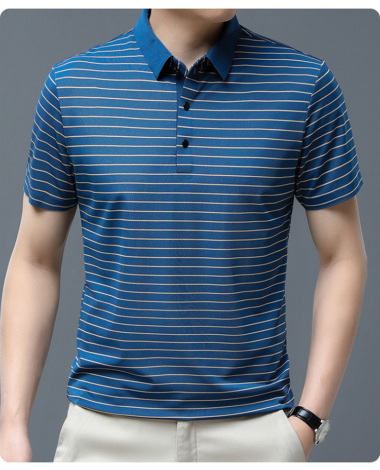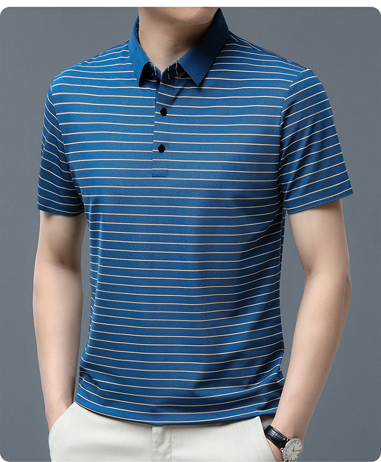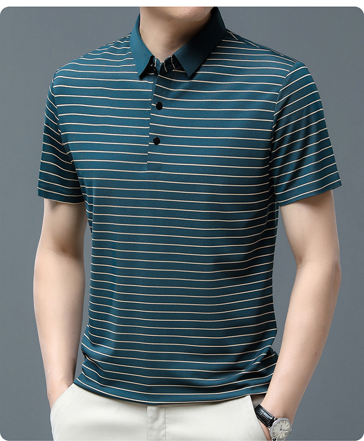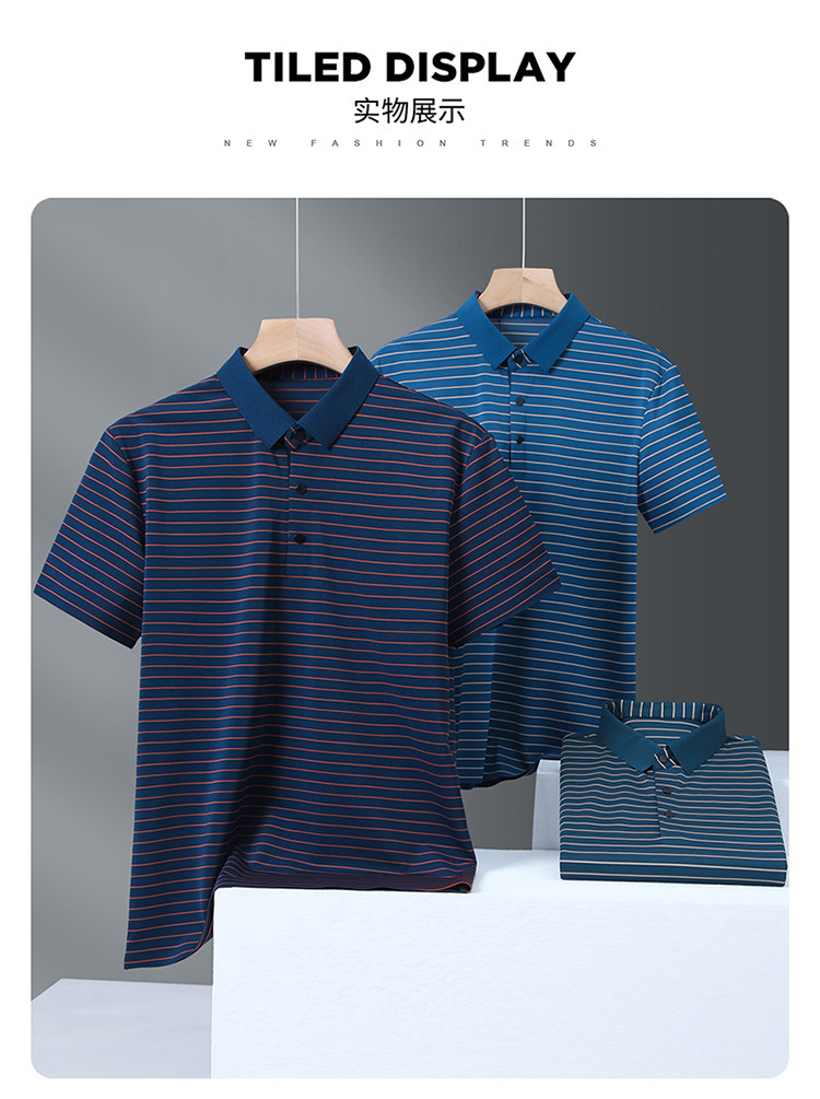 아이스 실크 얇은 반팔 티셔츠 남성용 여름 착용 쿨 캐주얼 중년 및 노인 아빠의복 랩 스트라이프 셔츠 반소매 티셔츠 남성용