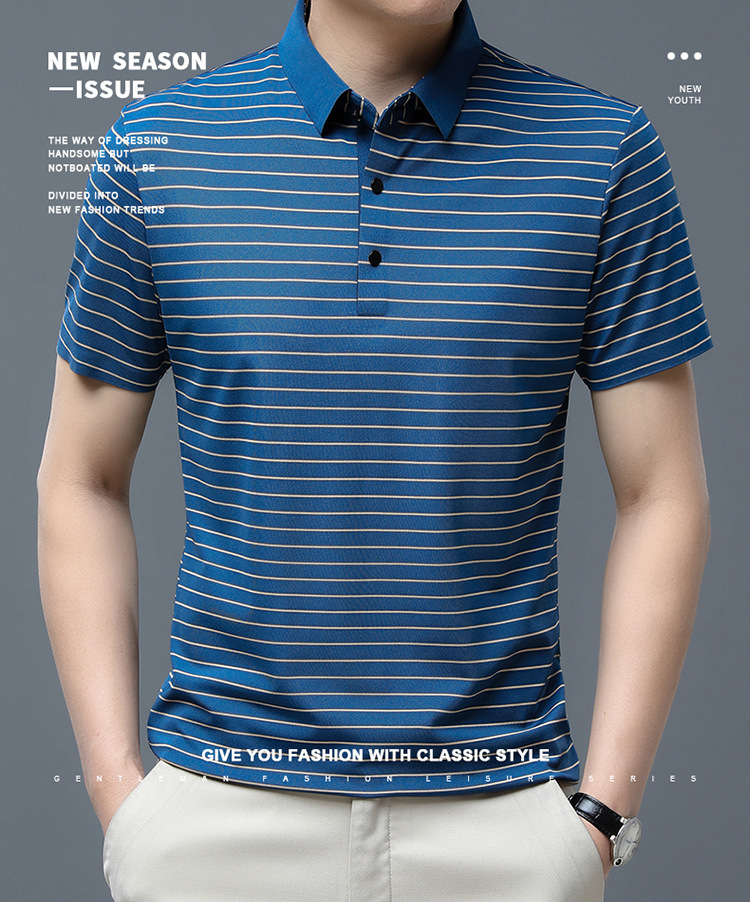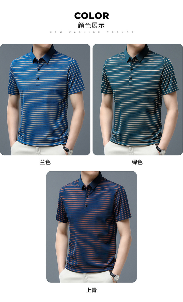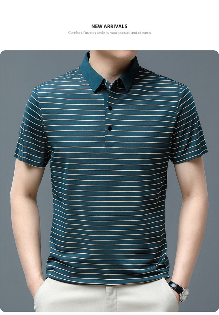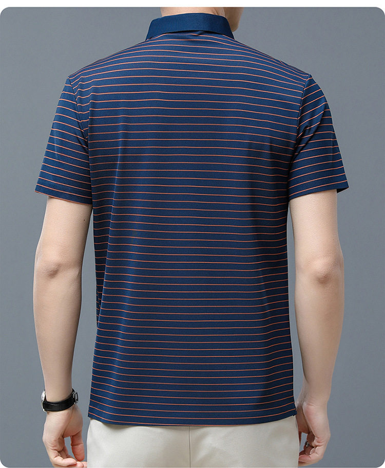 아이스 실크 얇은 반팔 티셔츠 남성용 여름 착용 쿨 캐주얼 중년 및 노인 아빠의복 랩 스트라이프 셔츠 반소매 티셔츠 남성용