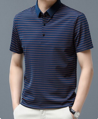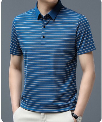 아이스 실크 얇은 반팔 티셔츠 남성용 여름 착용 쿨 캐주얼 중년 및 노인 아빠의복 랩 스트라이프 셔츠 반소매 티셔츠 남성용스토어 가기