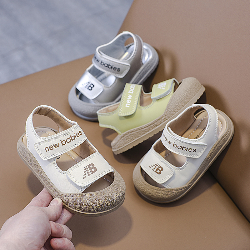 여름 한국 스타일 어린이 발가락 안티 킥 아기 샌들 소년 소녀 어린이 영어 편지 비치 신발 아기 유아 신발