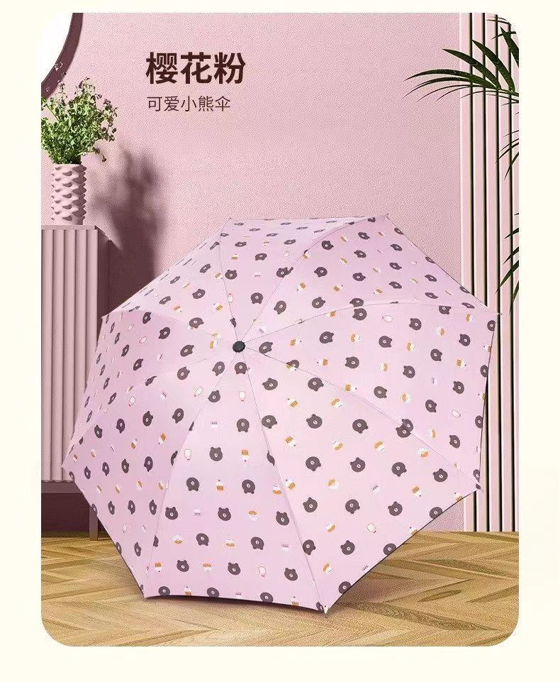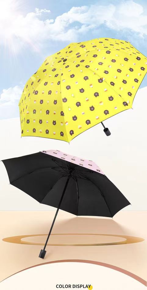 수동 곰 우산 검은 고무 자외선 차양 3 배 태양 우산 맑고 비오는 이중 사용 접이식 우산 제조 업체 도매스토어 가기