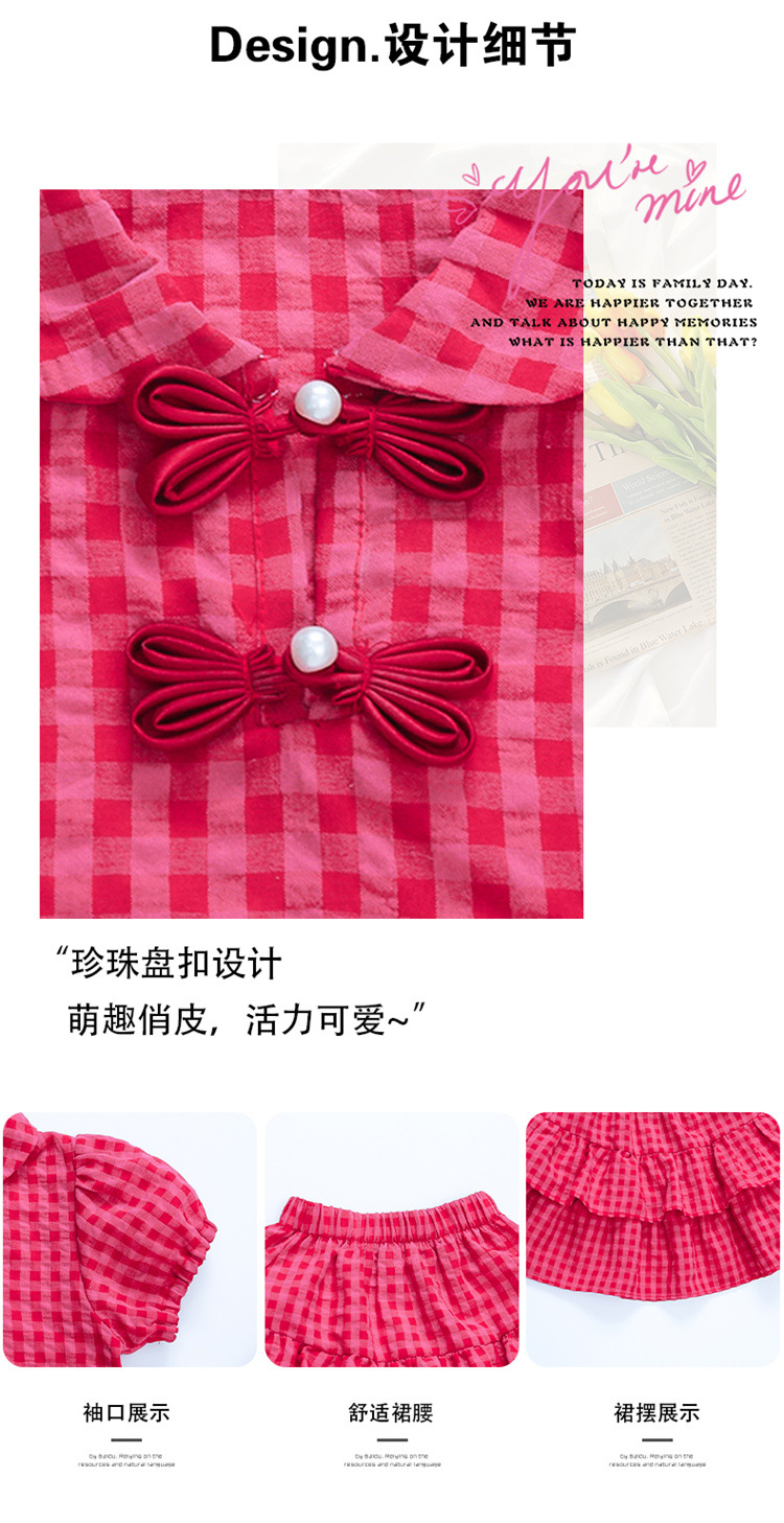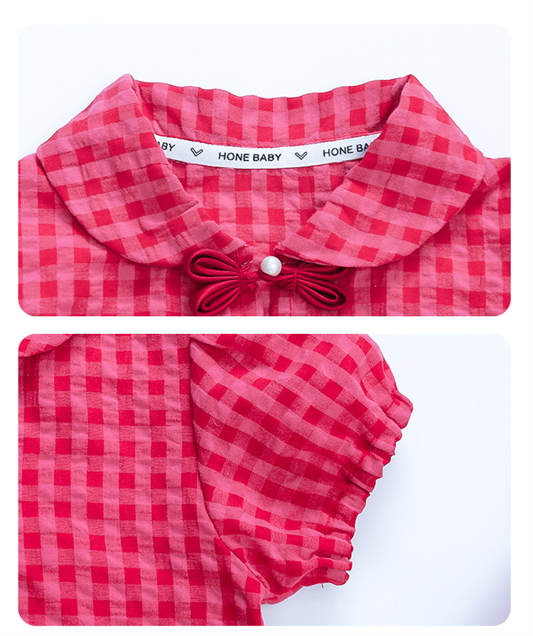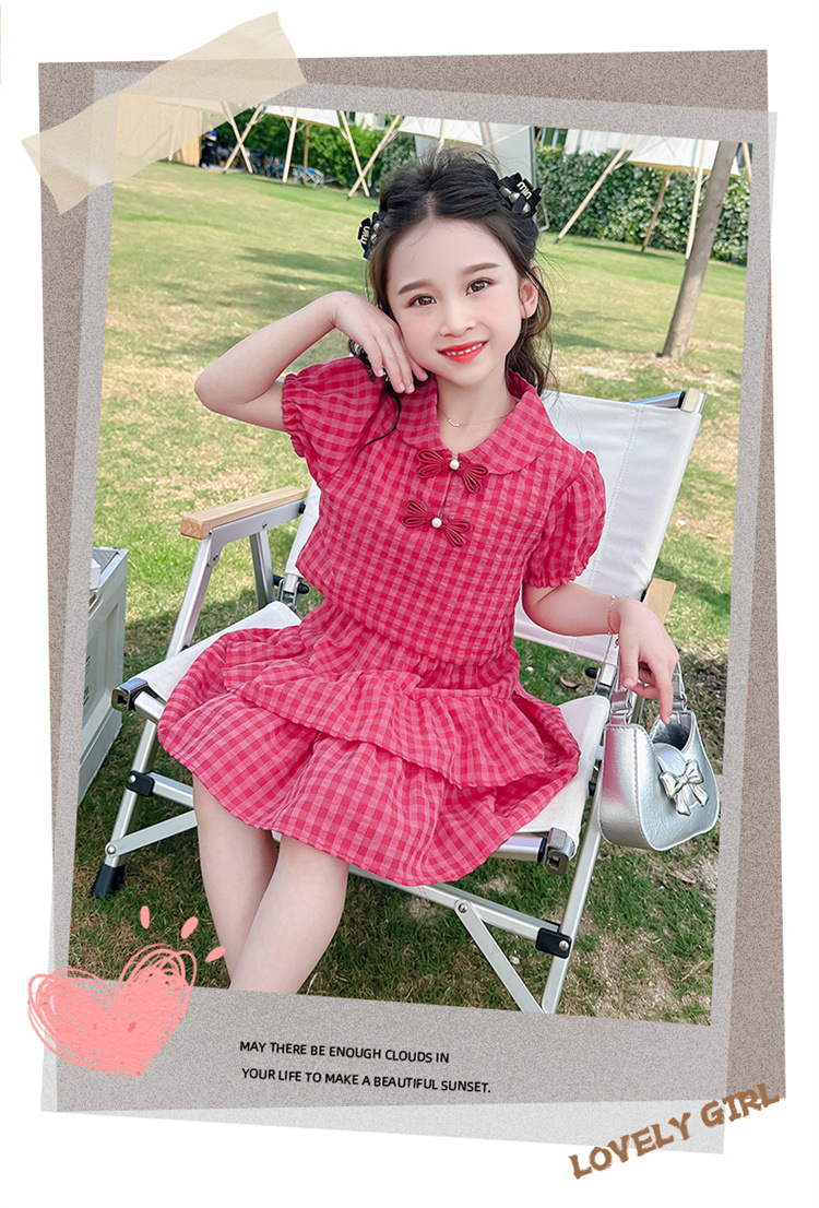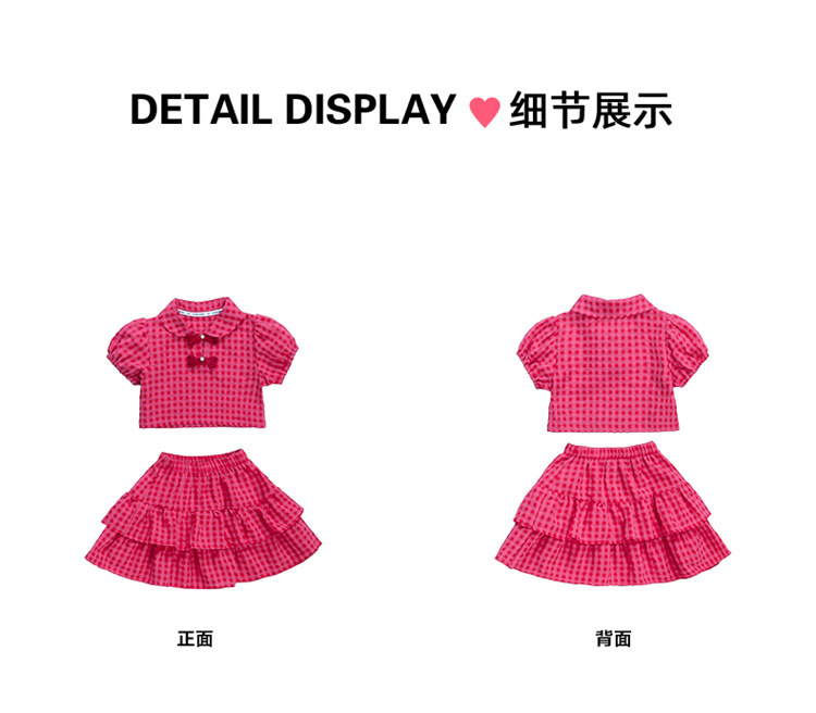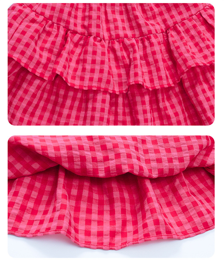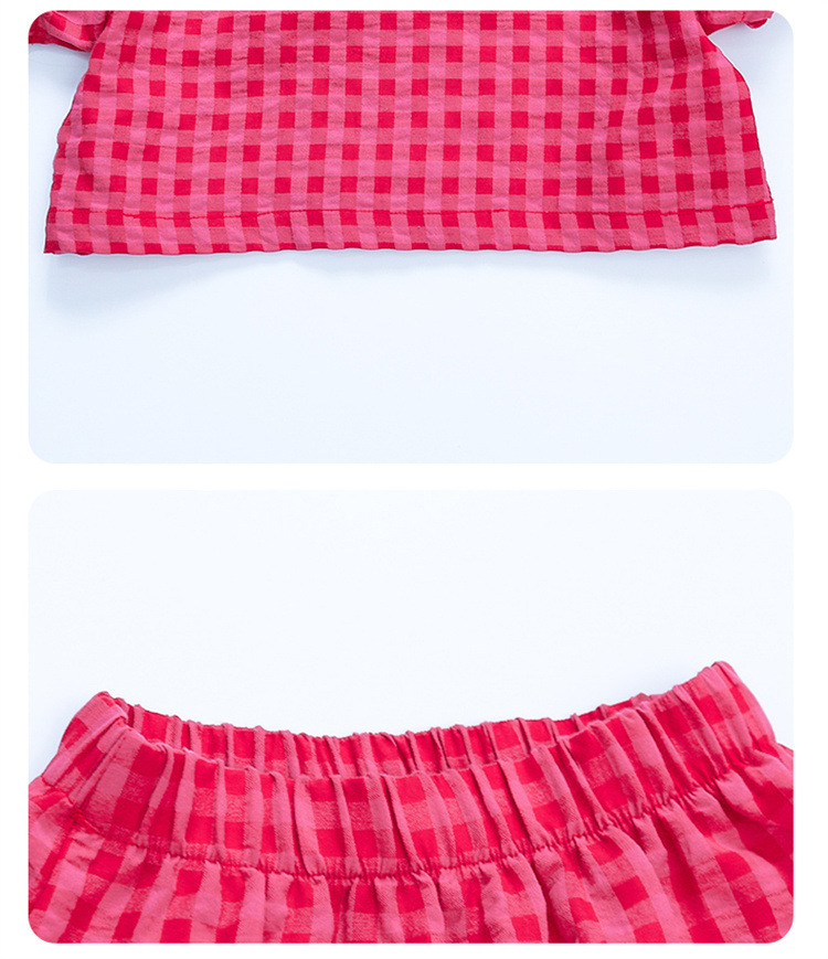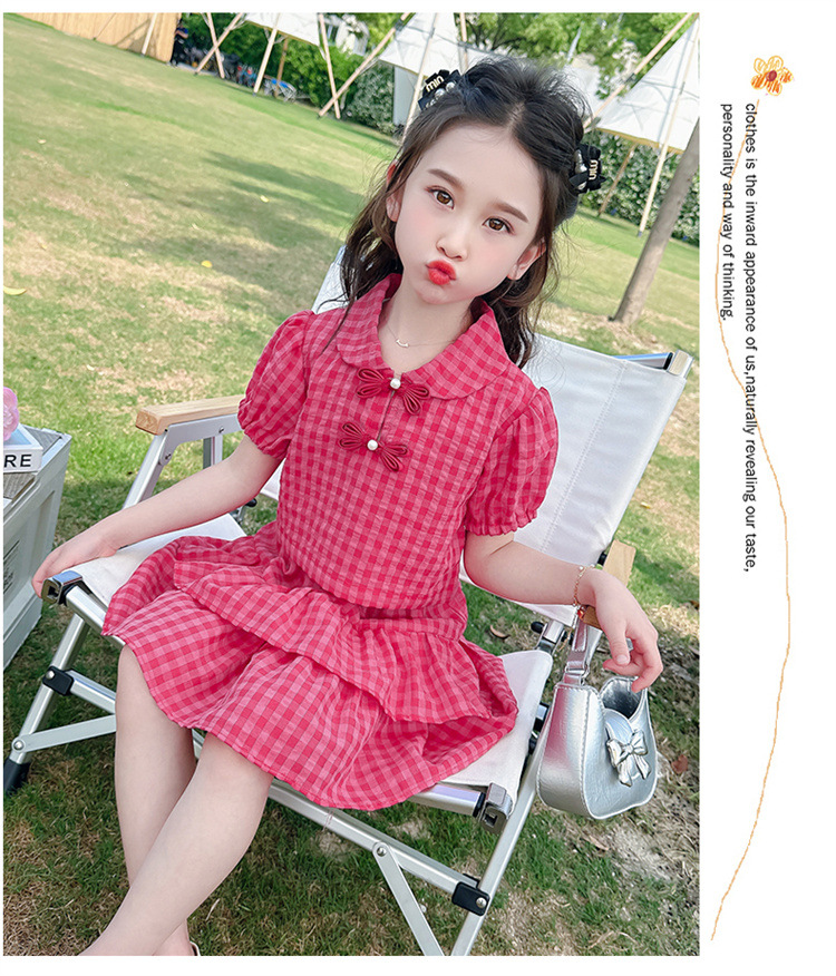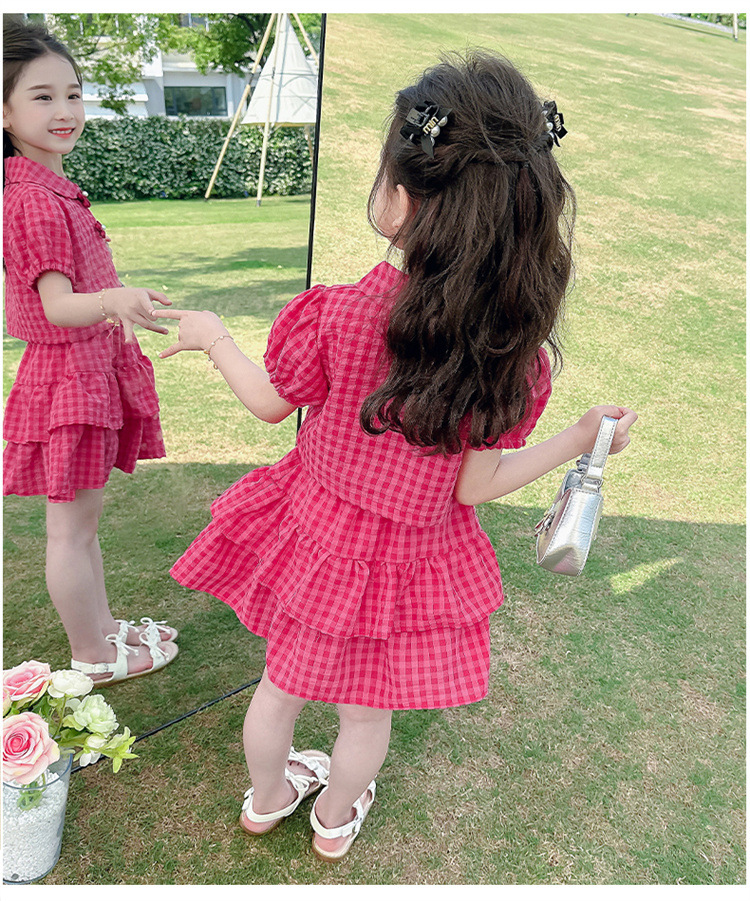 소녀 여름 세트 2024 새로운 패션 어린 소녀 스포츠 스타일 빨간 격자 무늬 원피스 2 피스 세트스토어 가기