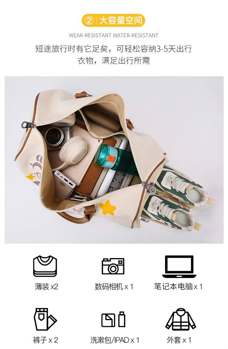 대용량 토트 백 소녀 신선한 캔버스 여행 가방 신발 보관 피트니스 가방 수하물 플러스 가방
