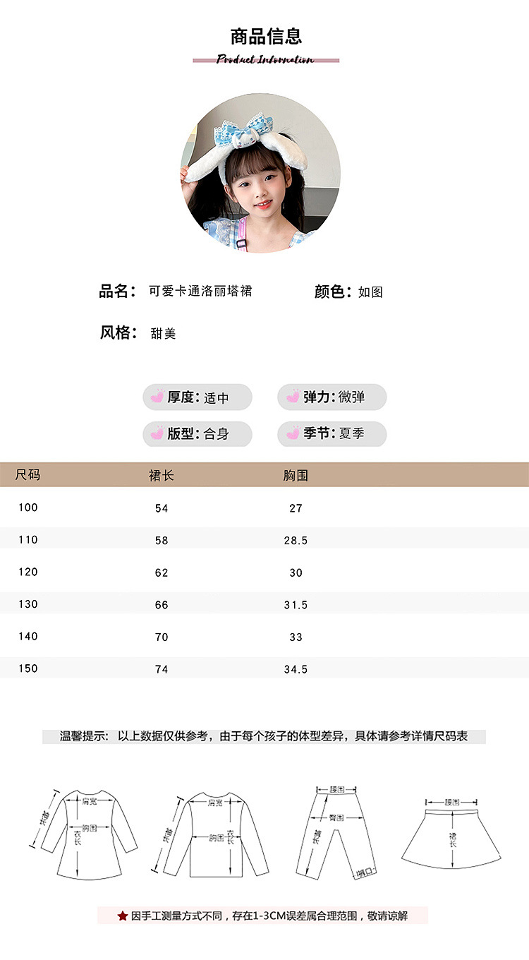 여아 로리타 공주 드레스 2024 어린이용 시나몬 강아지 서스펜더 스커트 여아 드레스 시나몬 강아지 공동 브랜드스토어 가기