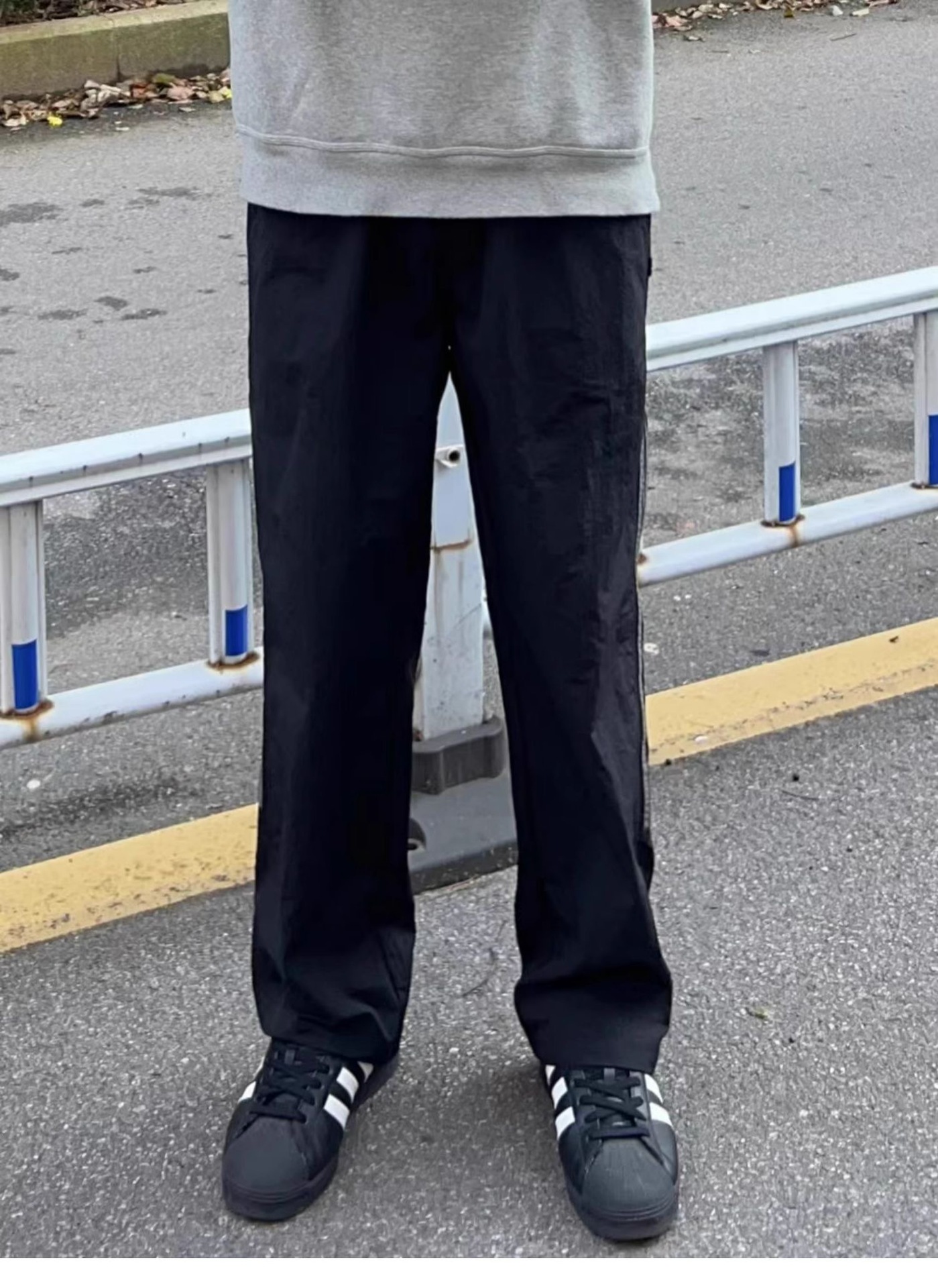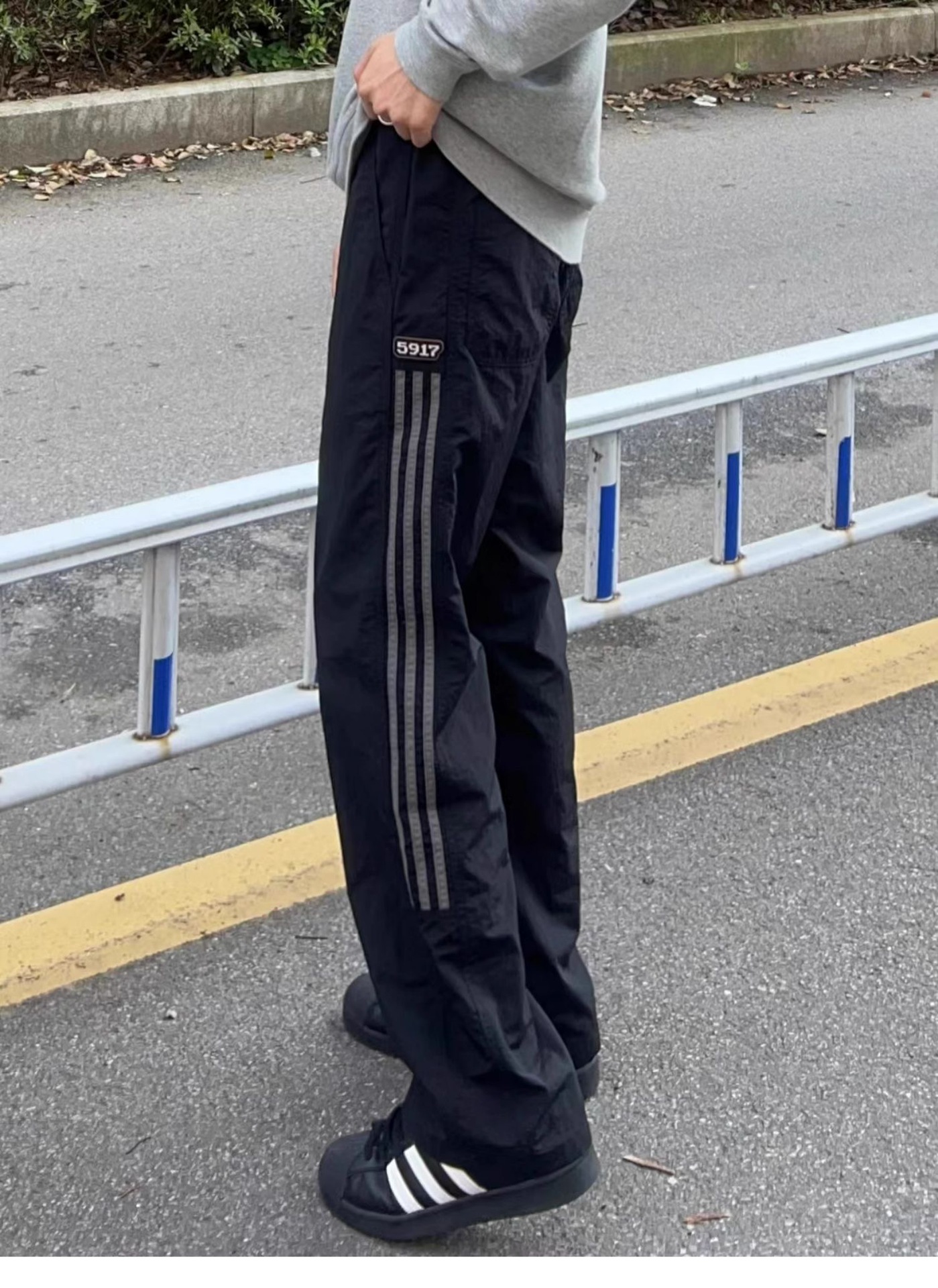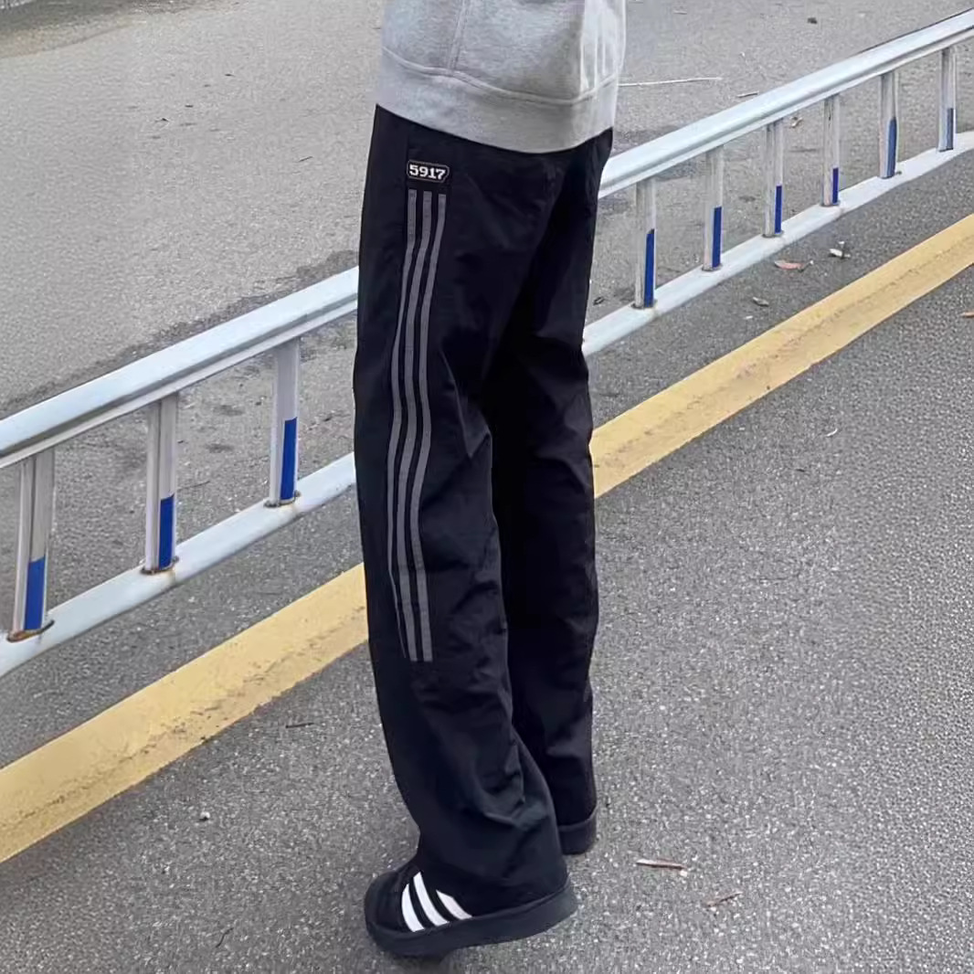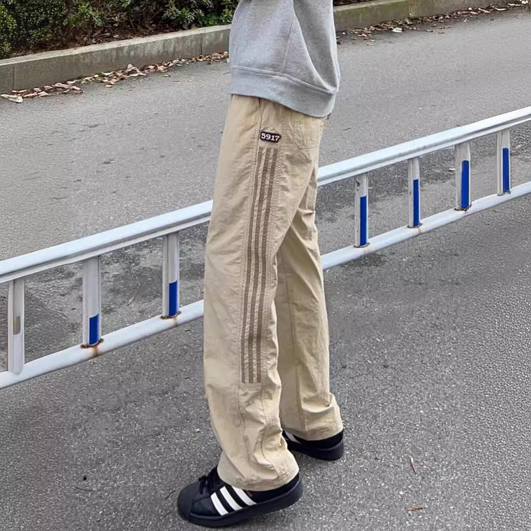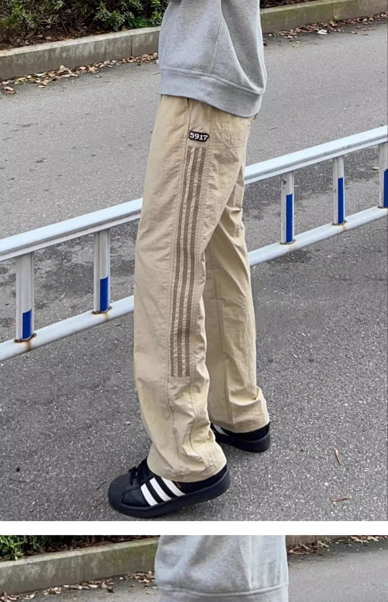 미국 기능성 러쉬 바지 남성용 여름 얇은 하이 스트리트 레트로 대조 컬러 스트라이프 디자인 센스 스트레이트 루즈 캐주얼스토어 가기