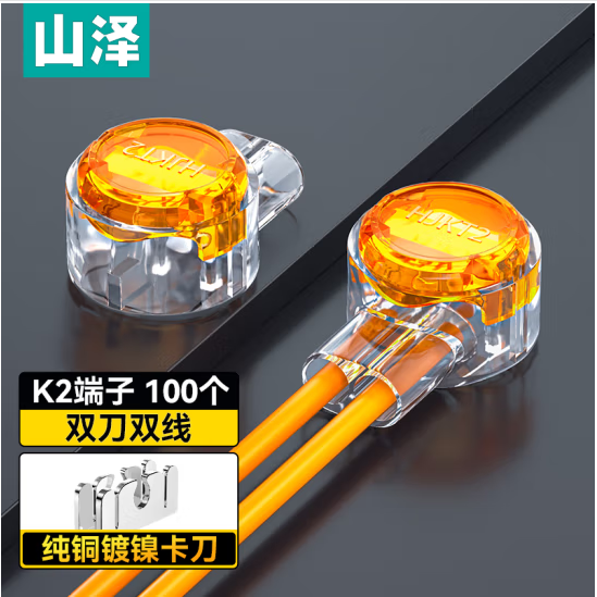 山泽(SAMZHE)PT-09 优质环保K2接线子接线端子 工程专用电话线网线接线头K2双刀双线接线器100个/袋 新袋子*1