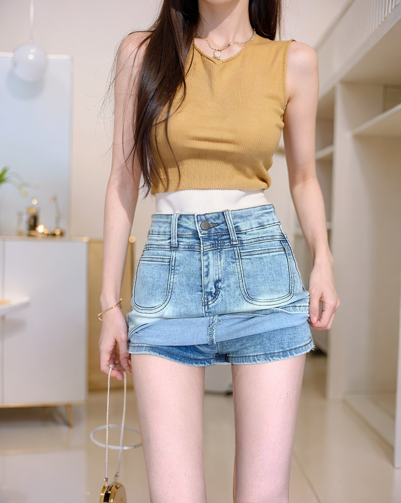 미국 복고풍 데님 스커트 여성 여름 빛 컬러 눈부심 방지 스커트 높은 허리 슬리밍 스커트 엉덩이 스커트스토어 가기