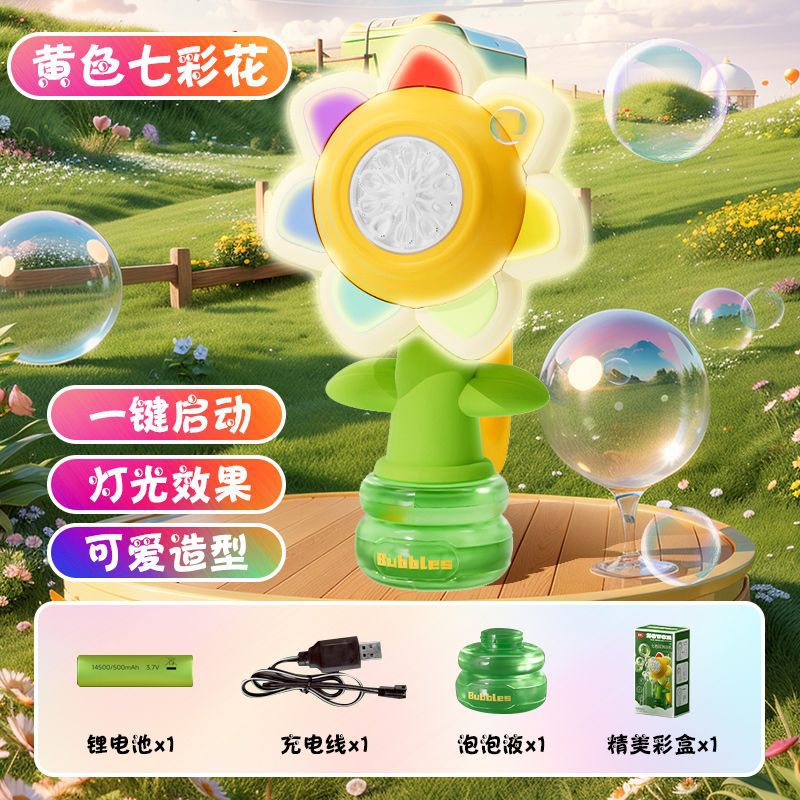 해바라기 거품 총 어린이 자동 빛 춤 누출 방지 액체 전기 거품 부는 야외 장난감 소년 소녀스토어 가기