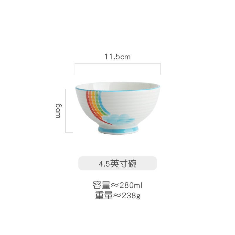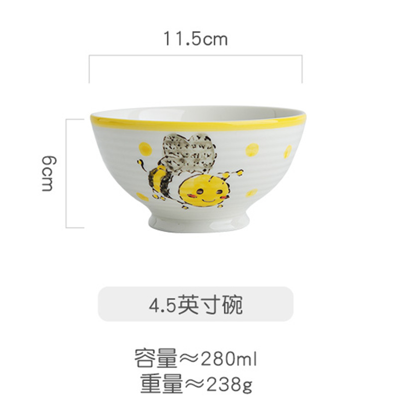 [신간] 귀여운 세라믹 작은 그릇 가정용 일본식 밥 그릇 높은 창조적 인 Underglyze 컬러 식기 만화 밥 그릇