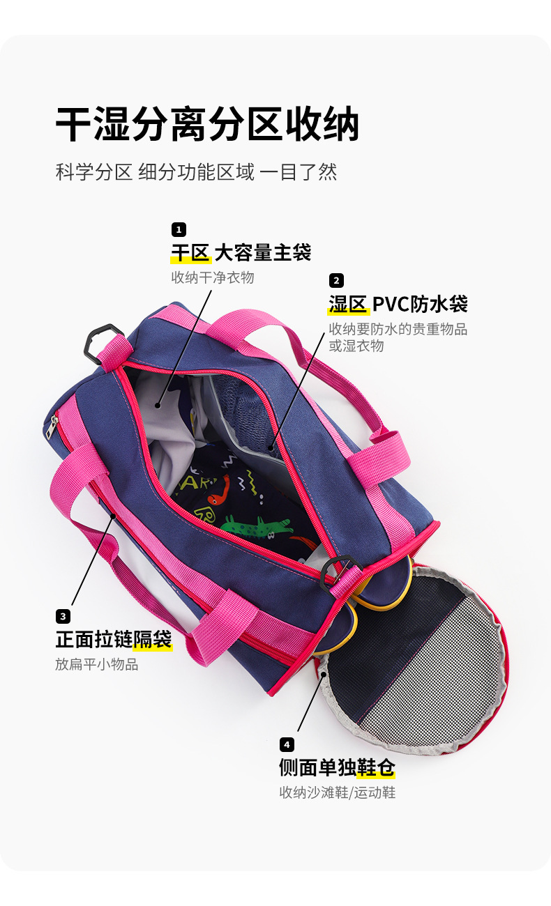 어린이 수영 보관 가방 건조하고 젖은 분리 소녀 방수 스포츠 피트니스 수영 가방 학생들을위한 특수 훈련 장비
