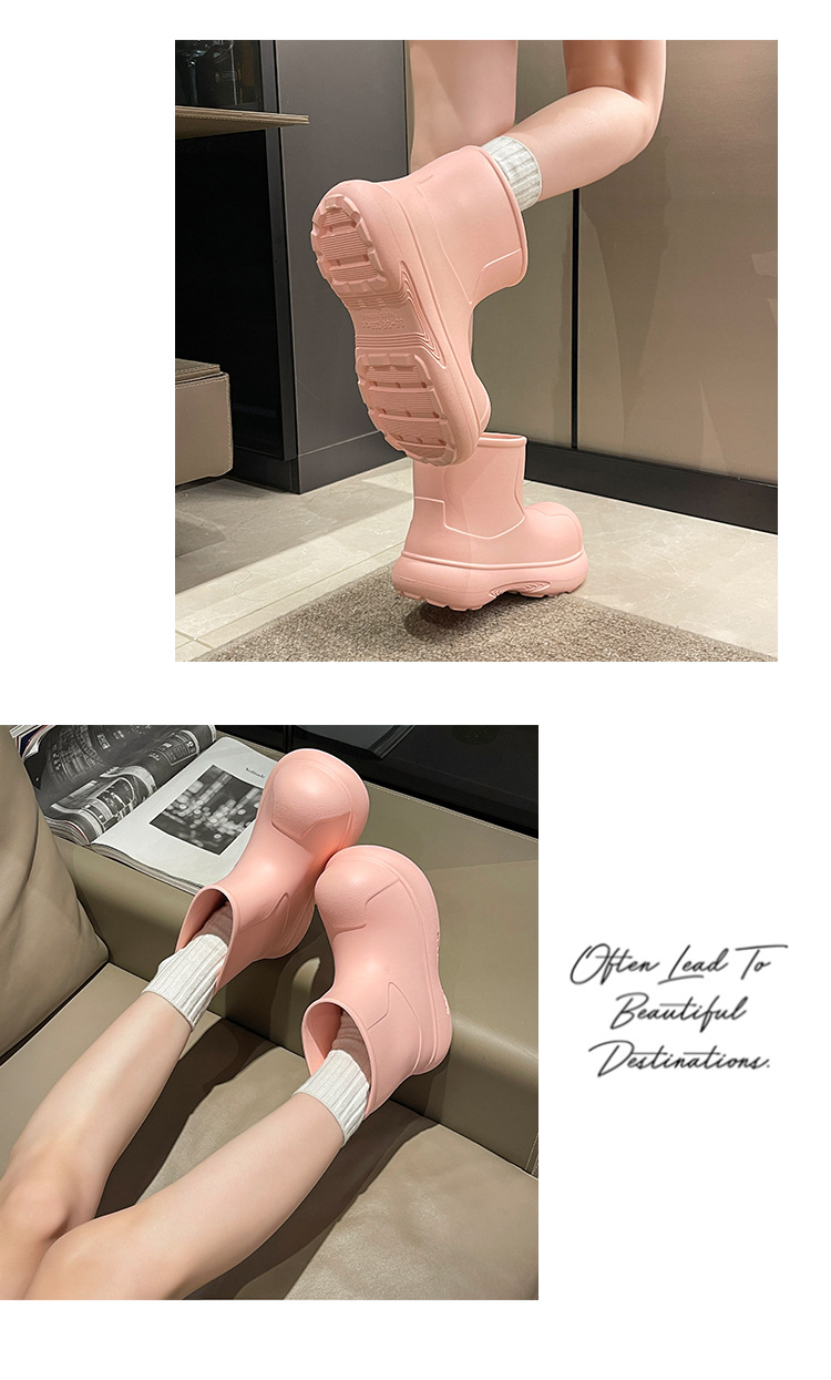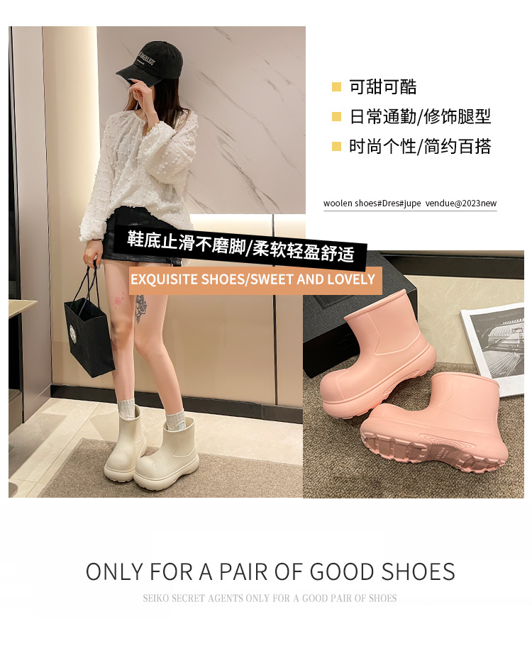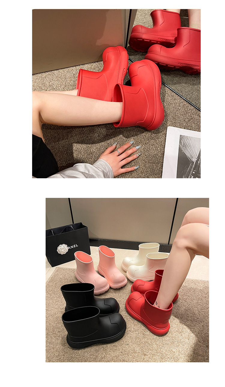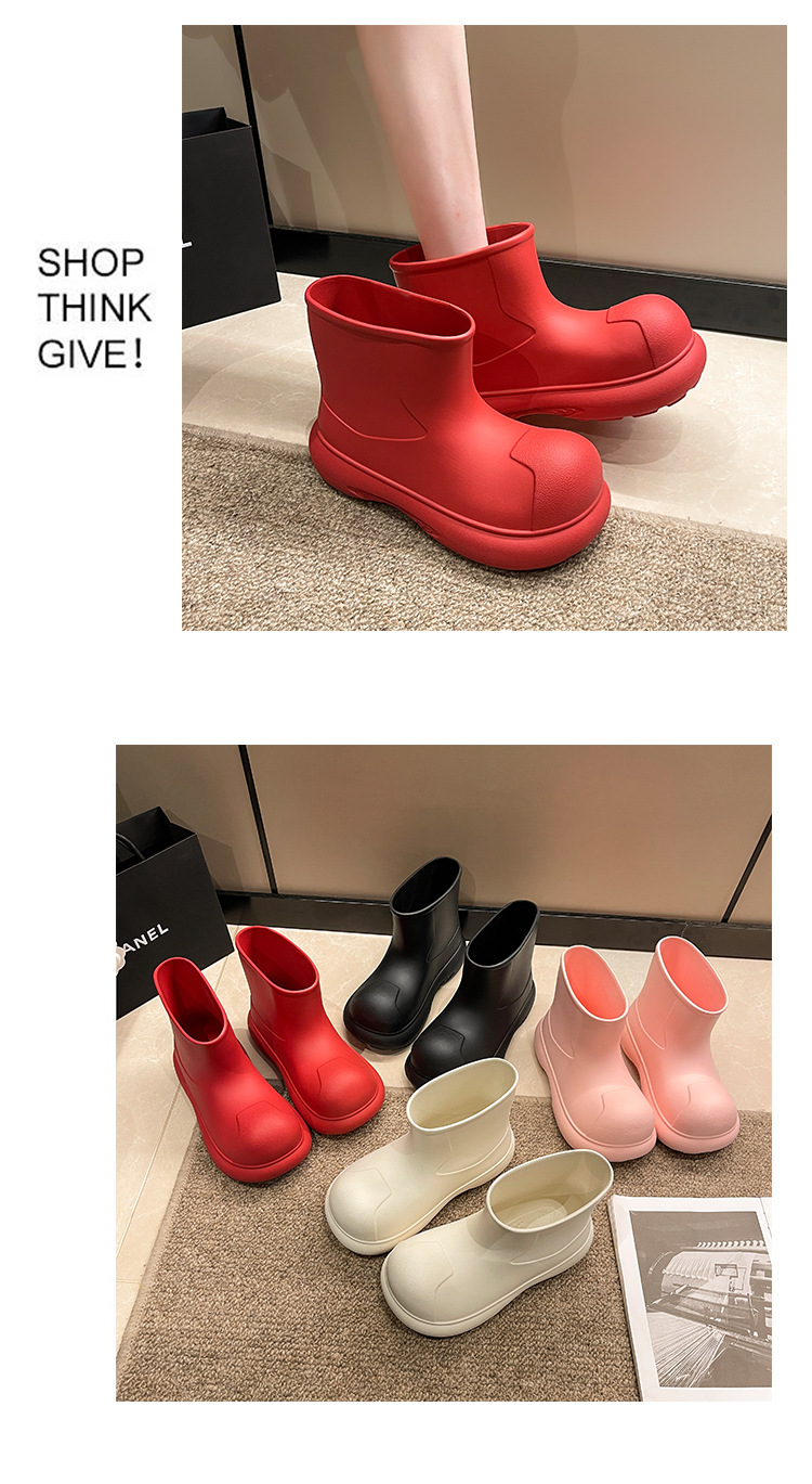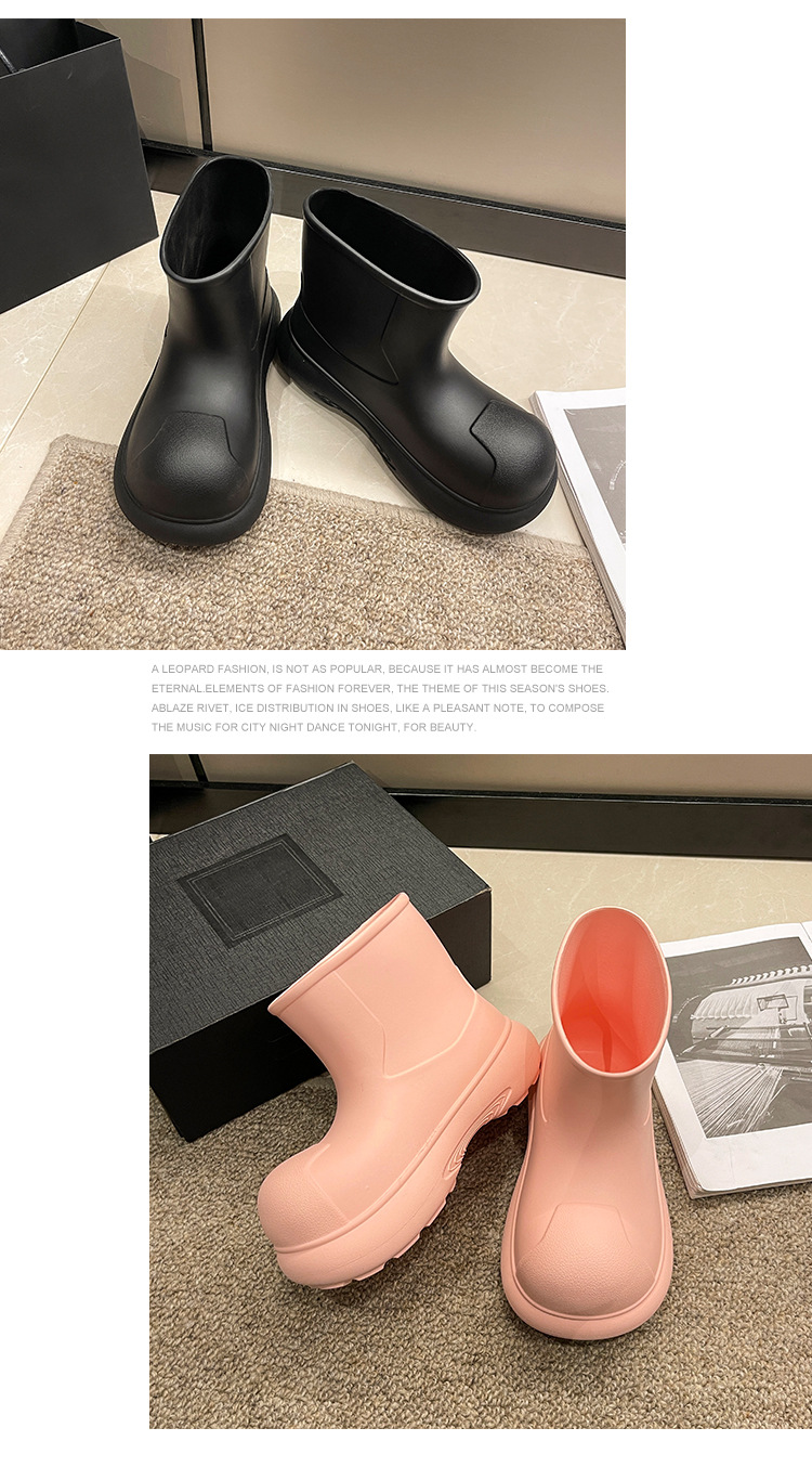 그물 붉은 비 신발 여성의 2024 새로운 광대 신발 야외 두꺼운 바닥 방수 미끄럼 방지 장화 여성용 짧은 부츠 귀여운스토어 가기