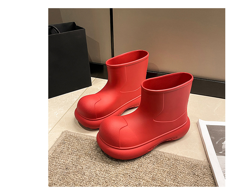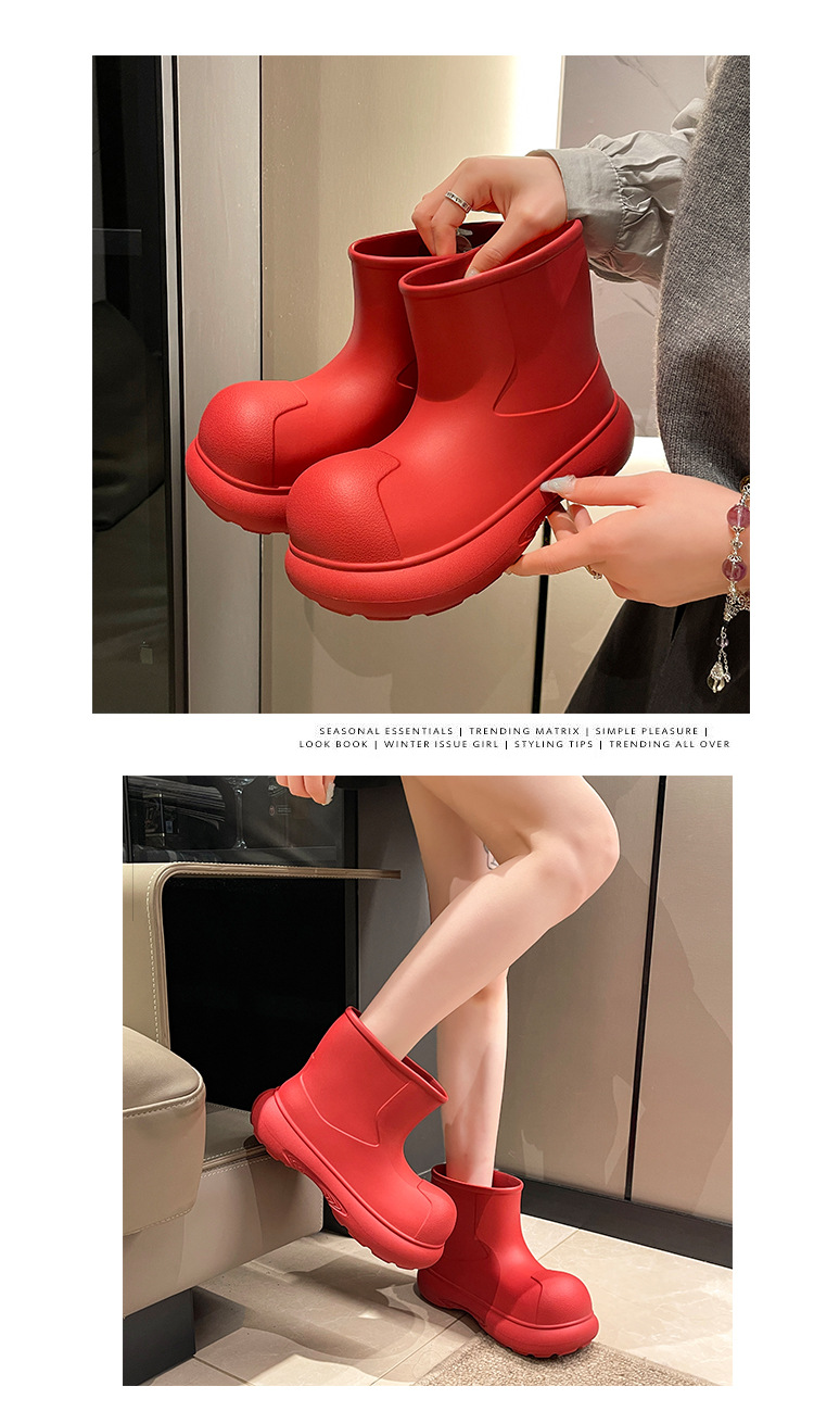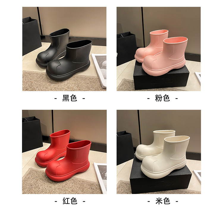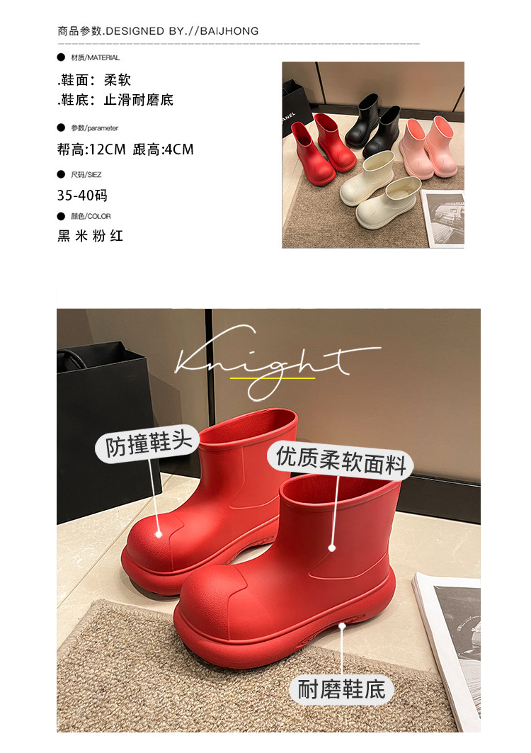 그물 붉은 비 신발 여성의 2024 새로운 광대 신발 야외 두꺼운 바닥 방수 미끄럼 방지 장화 여성용 짧은 부츠 귀여운