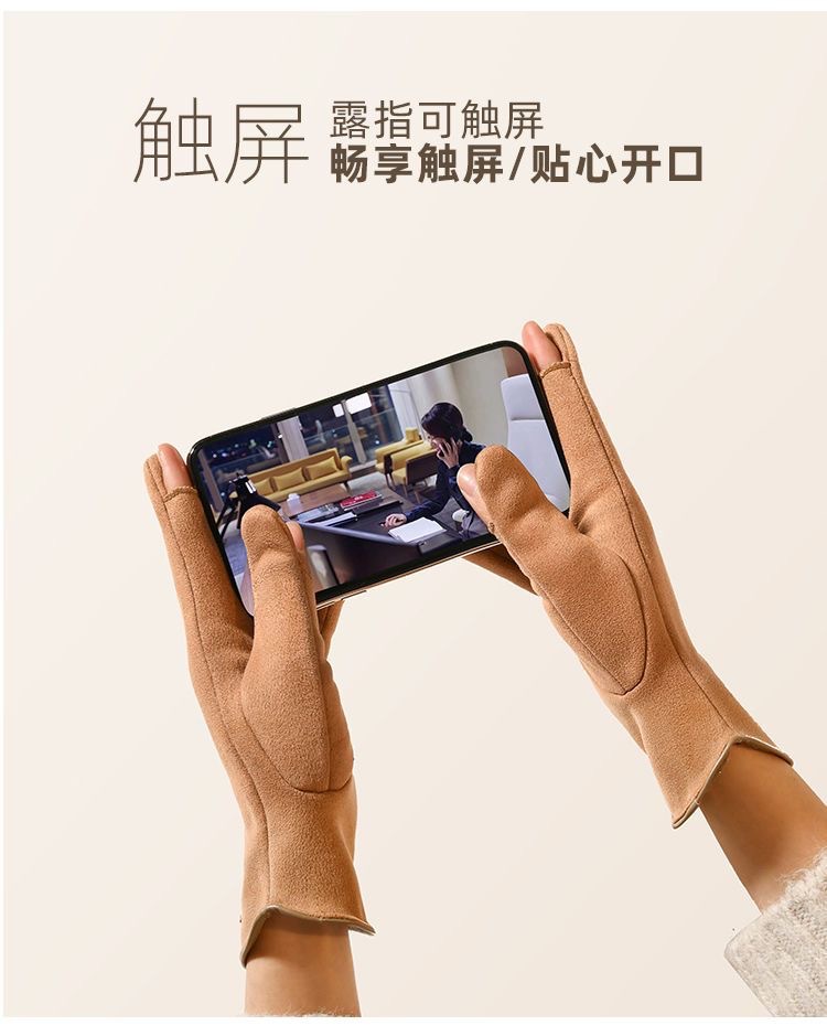 독일 벨벳 여성 장갑 따뜻한 기모 노출 된 손가락 터치 스크린 장갑을 타고 반원 손목 패션 한국식 장갑스토어 가기