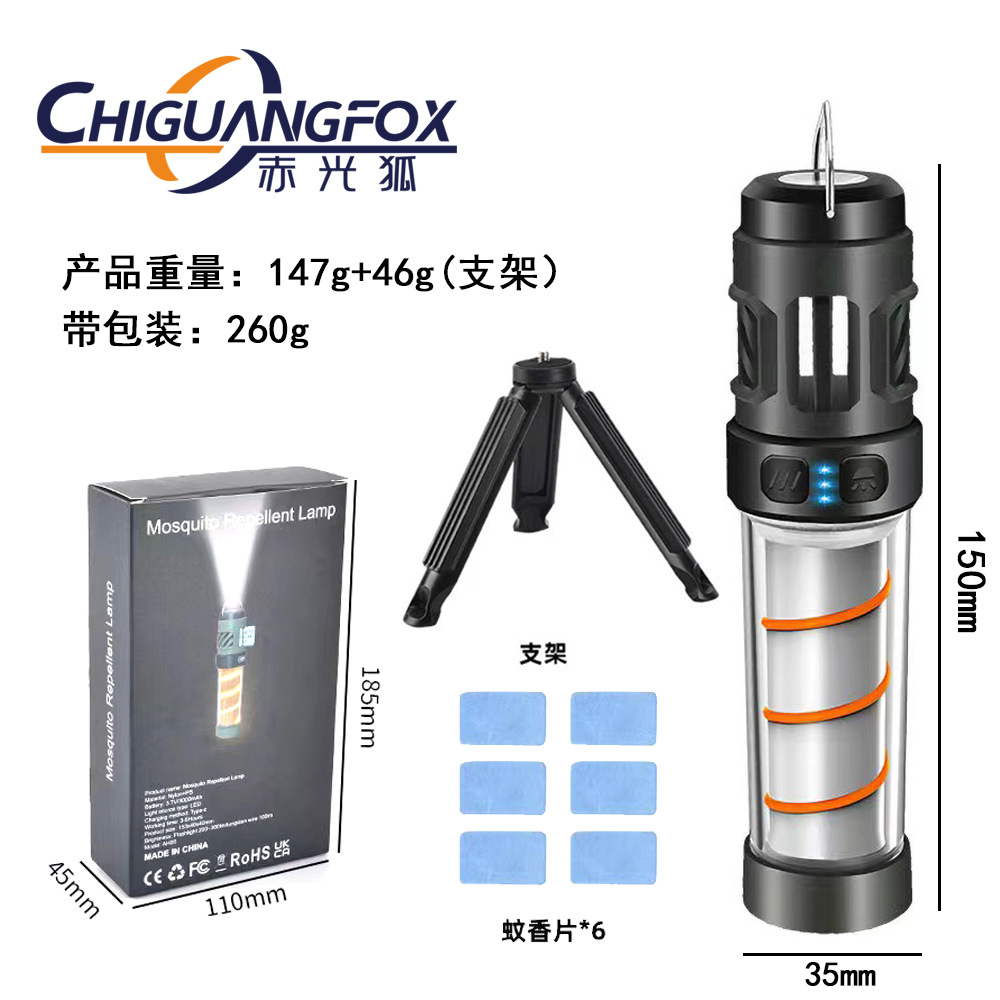 产品配件:驱蚊灯+支架+type-c线+驱蚊片*6+彩盒