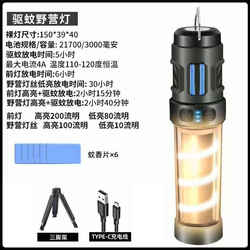 야외 LED 다기능 모기 구충제 캠핑 라이트 타입 C 충전 휴대용 자기 삼각형 브래킷 텐트 대기 등