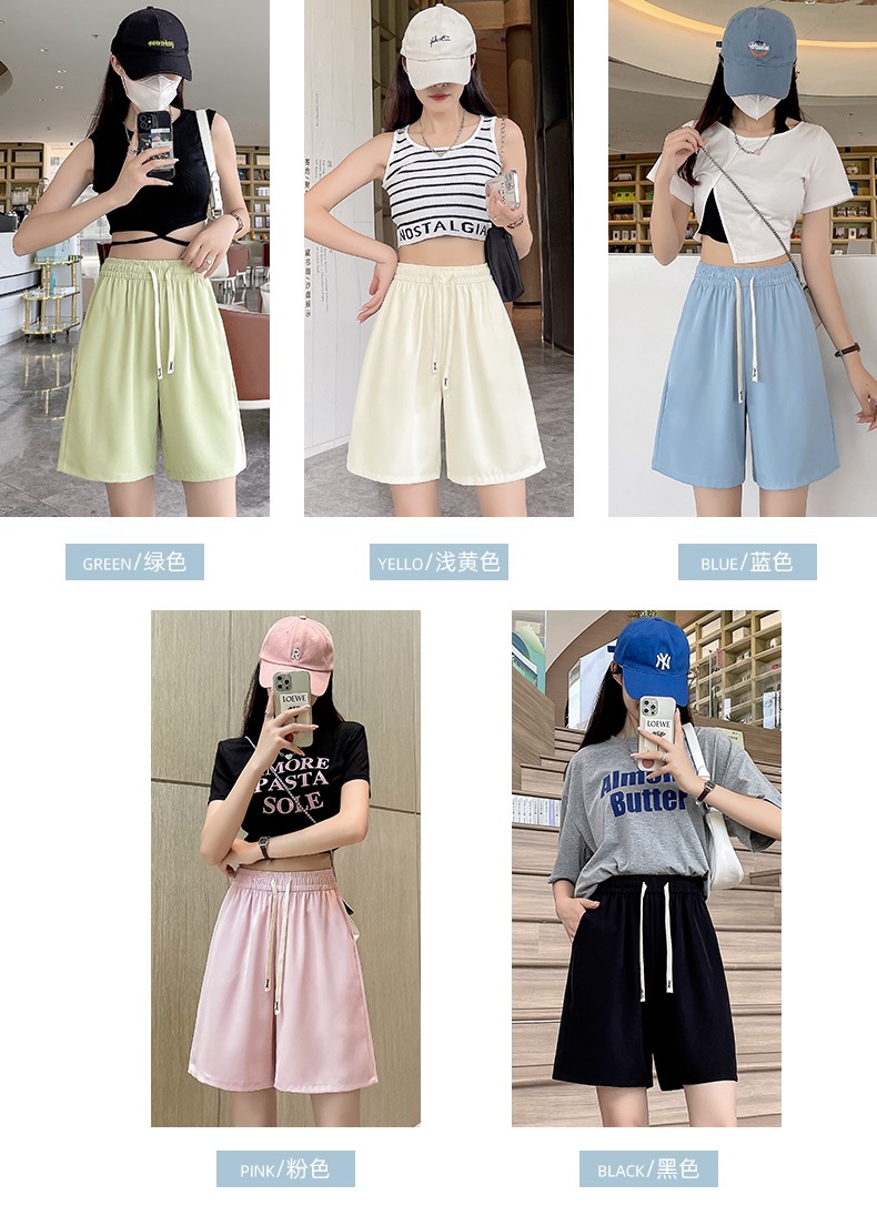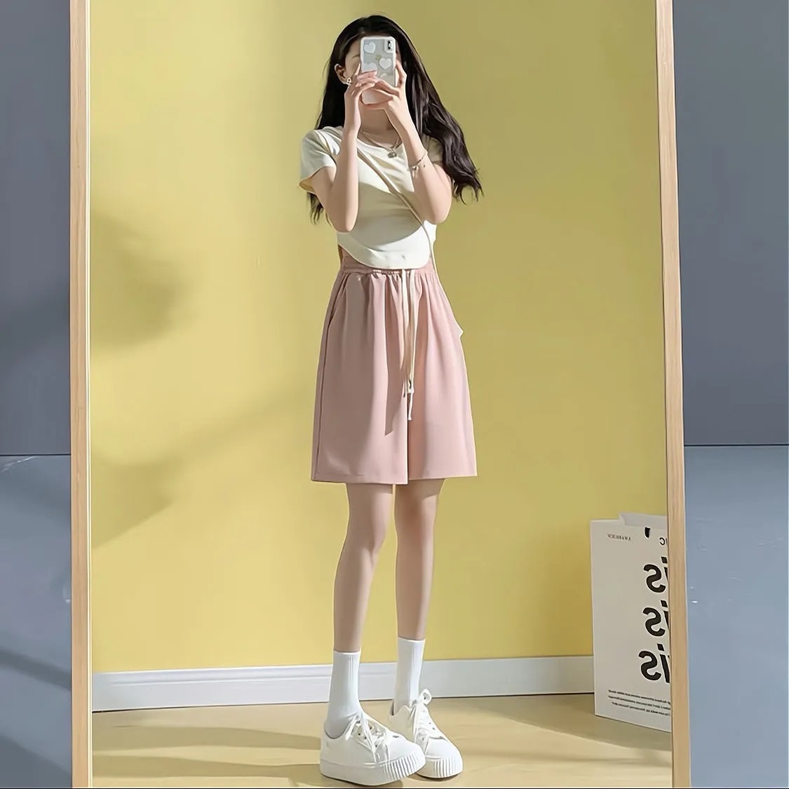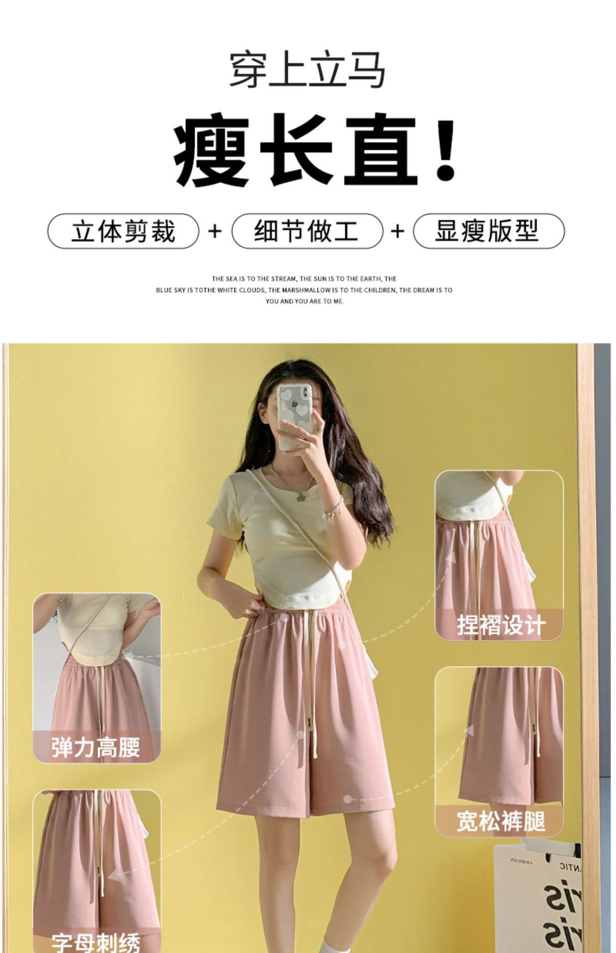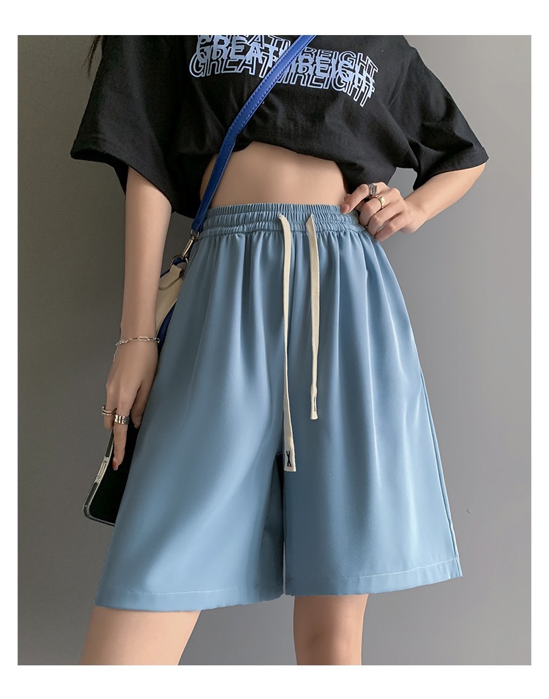 얇은 세트 바지 반바지 외복 여름 새로운 높은 허리 슬리밍 느슨한 넓은 다리 바지 캐주얼 스트레이트 여성용 의류스토어 가기