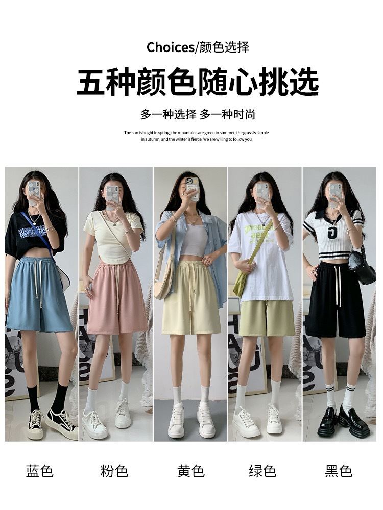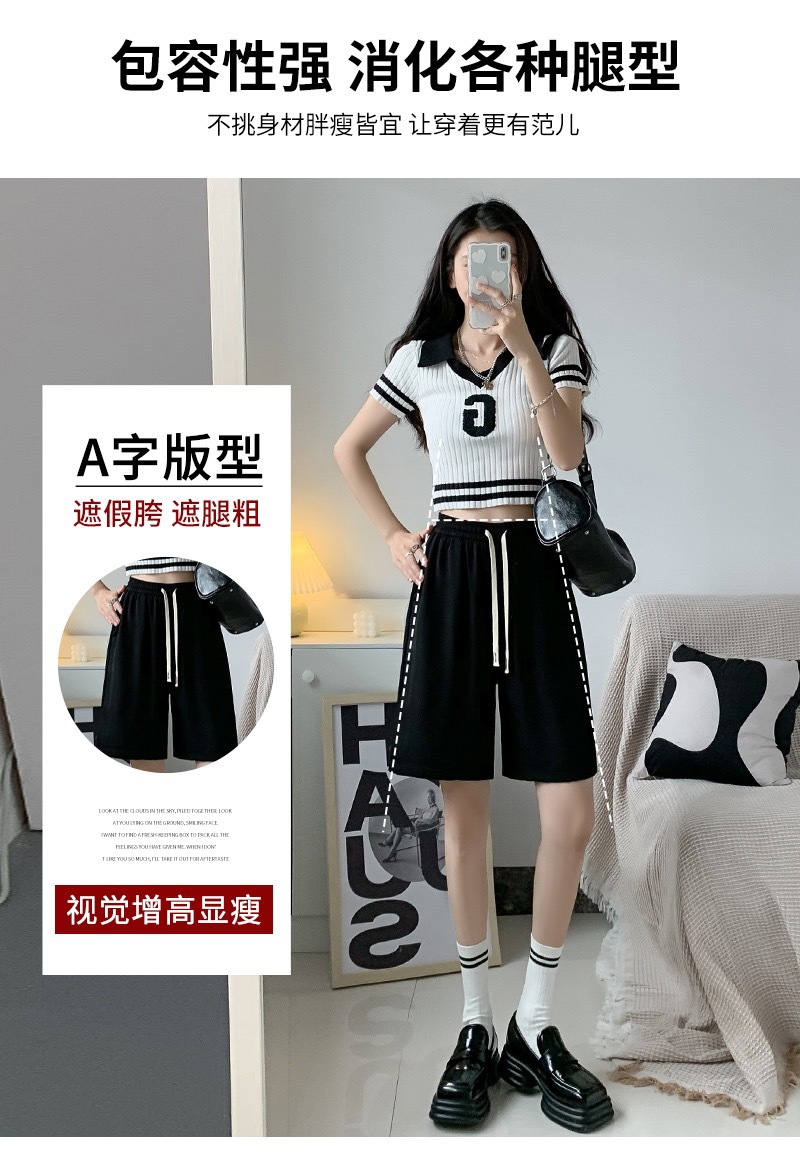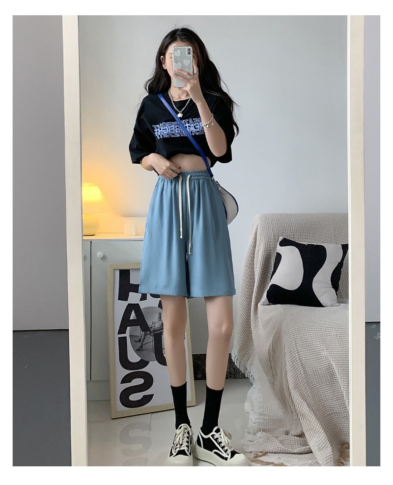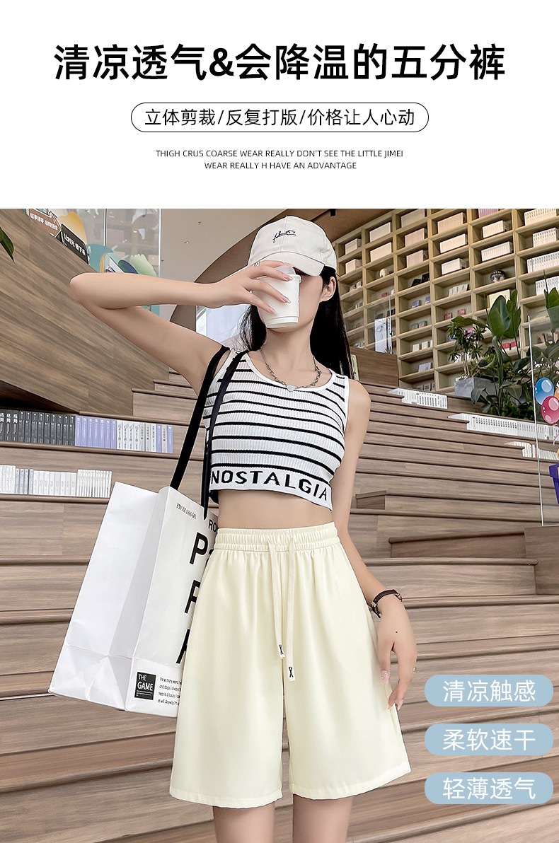 얇은 세트 바지 반바지 외복 여름 새로운 높은 허리 슬리밍 느슨한 넓은 다리 바지 캐주얼 스트레이트 여성용 의류스토어 가기
