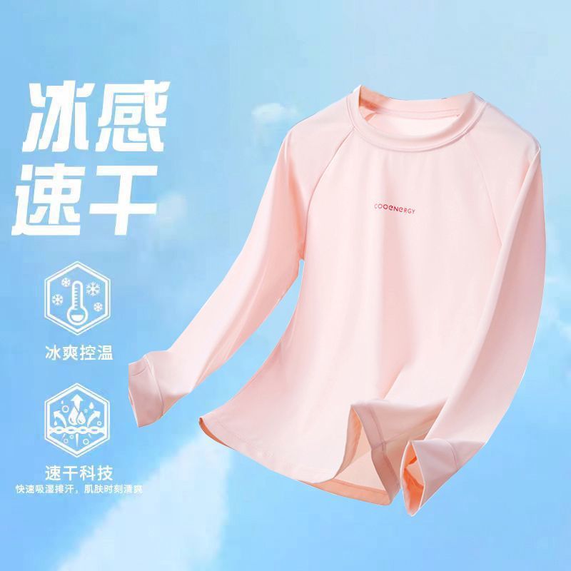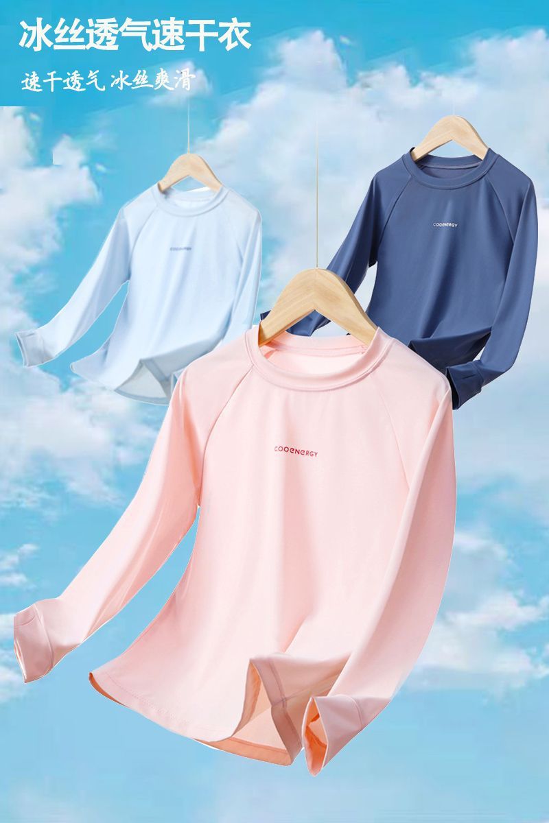 아이스 실크 어린이 선 스크린 의류 소녀 긴팔 티셔츠 봄과 여름 의류 경량 소년 스포츠베이스 셔츠 통기성 훈련 옷