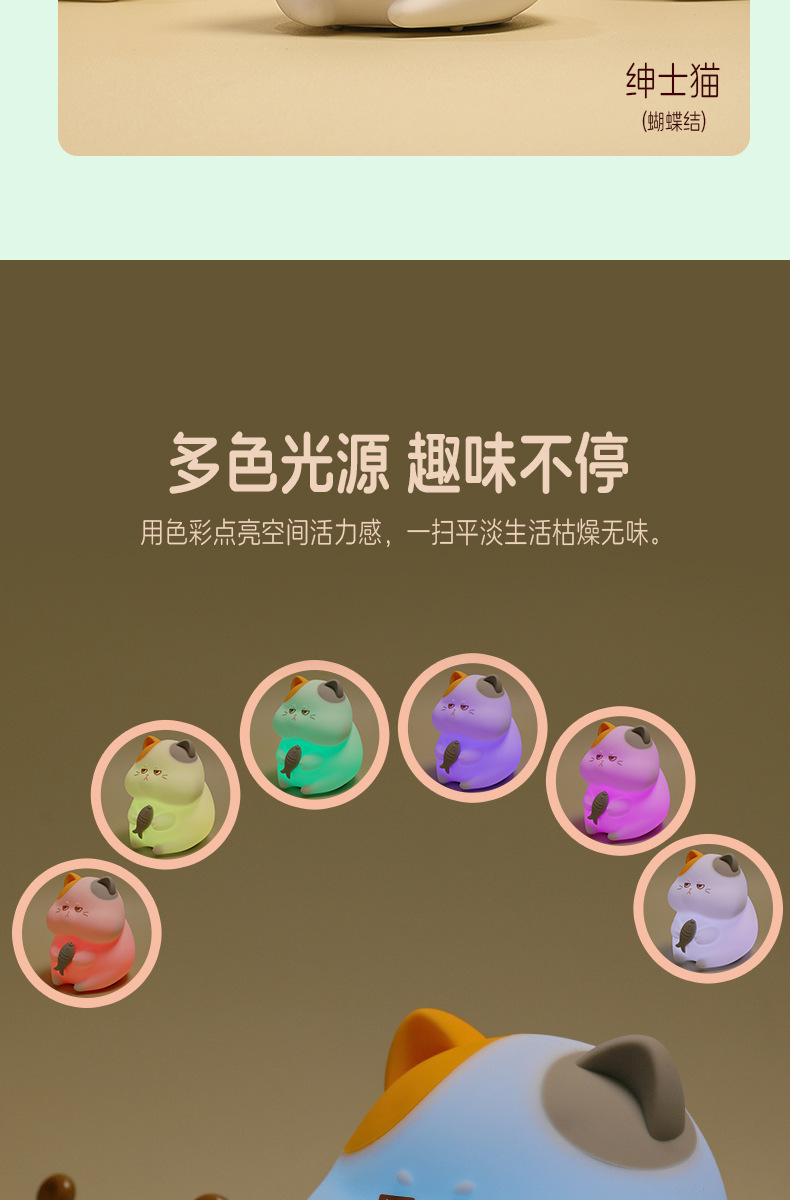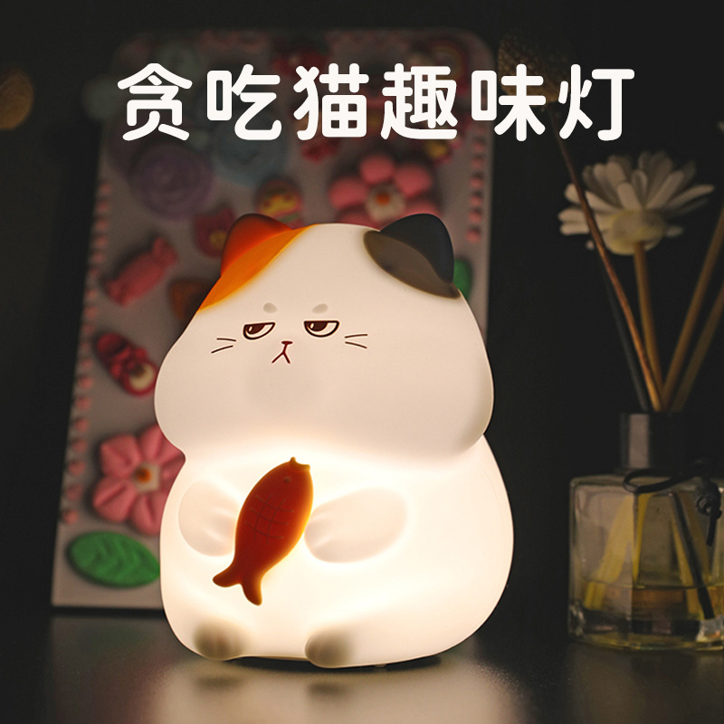 고양이 밤 빛 귀여운 침실 데스크탑 장식품 침대 옆 램프 어린이 창조적 인 선물 터치 및 팻 수면 조명스토어 가기