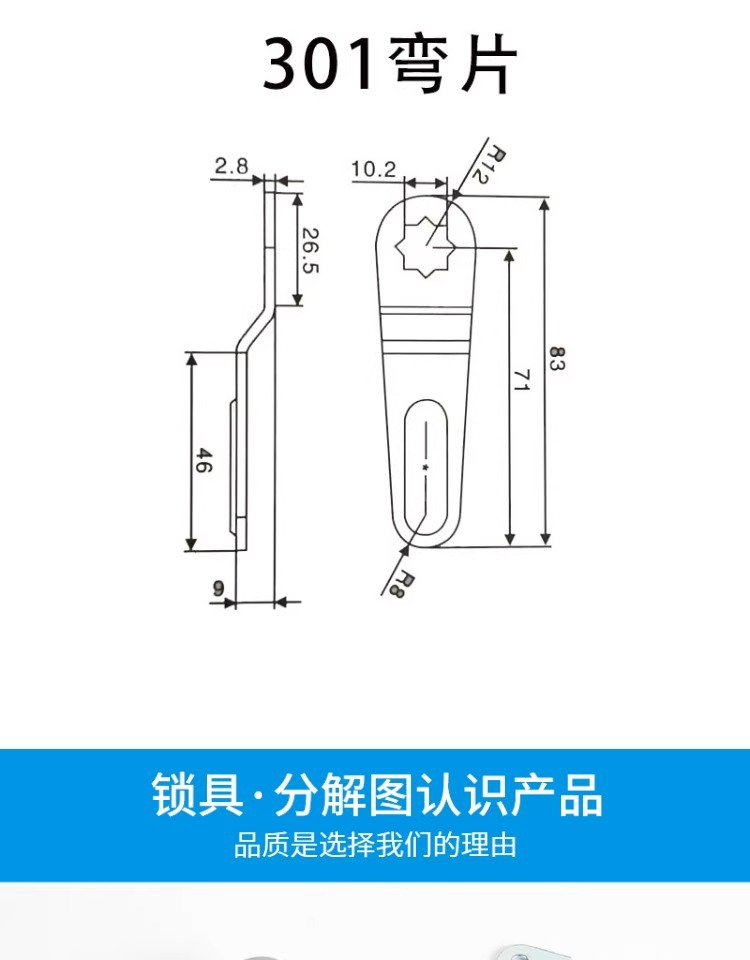 • 열쇠가있는 스몰 사이즈 AB303-1B 구부러진 조각