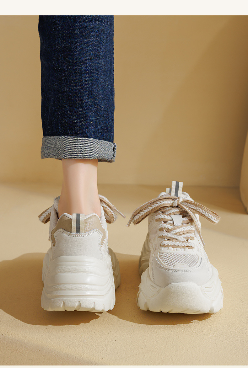 여성을위한 두꺼운 밑창 아빠 신발 2025 새로운 여름 메쉬 통기성 흰색 신발 캐주얼 스포츠 작은 키가 큰 여성 신발스토어 가기
