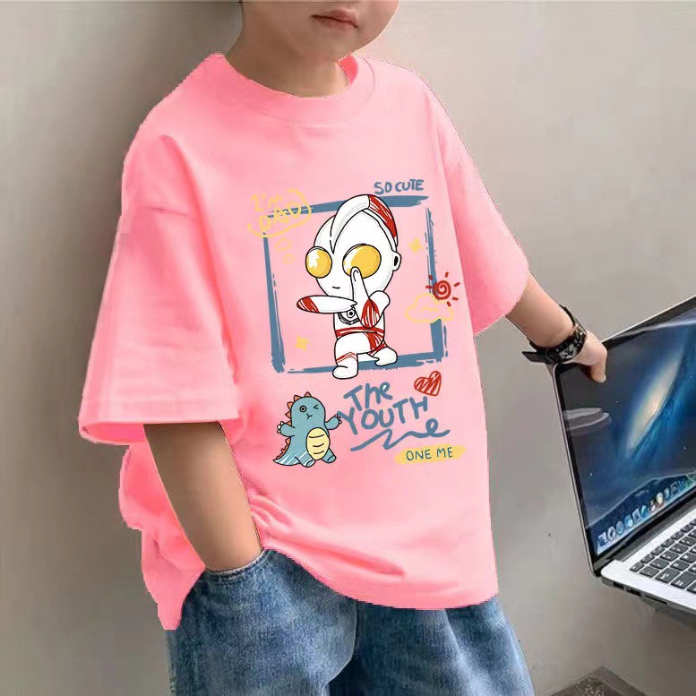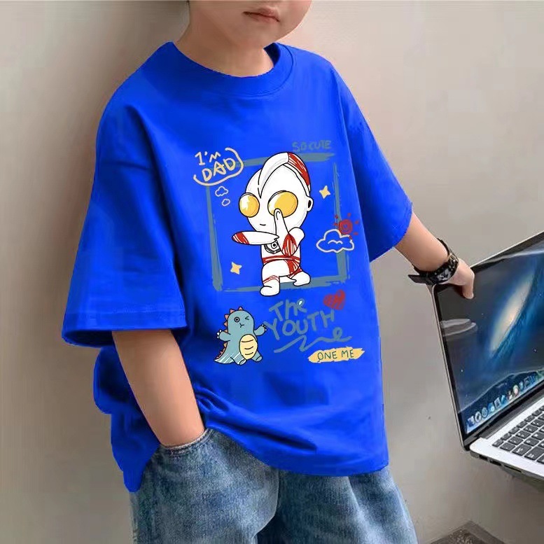 100 코튼 보이즈 반팔 티셔츠 아동복 여름 새 잘 생긴 어린이 탑 반소매 중대형 어린이 여름 패션스토어 가기