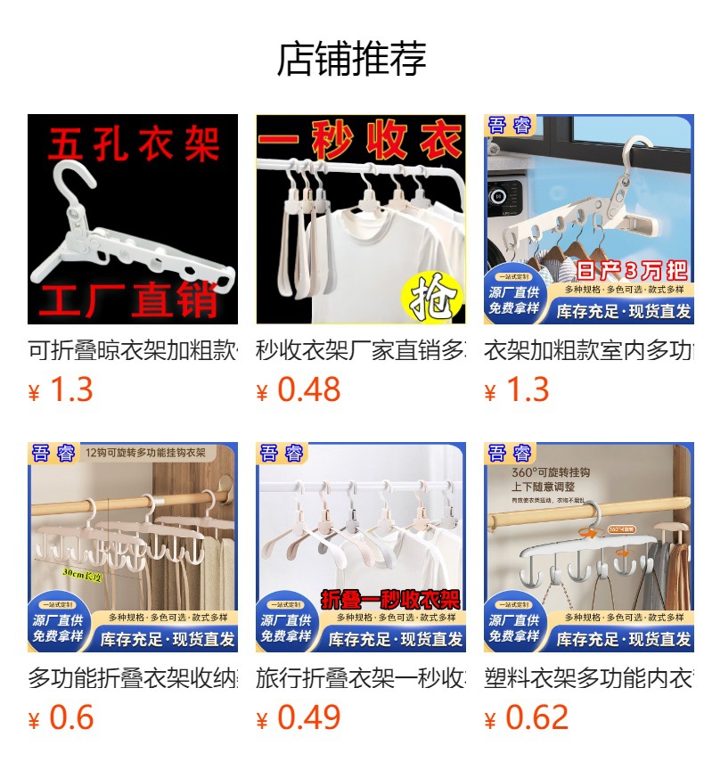접이식 옷걸이 대담한 실내 다기능 여행 플라스틱 초 컬렉션 옷걸이 도매 가정용 휴대용 5 홀 옷걸이스토어 가기