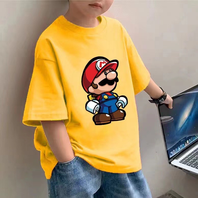 100 면 아동복 소년 티셔츠 여름 새 어린이 반소매 만화 탑 느슨한 중대형 어린이 반소매 티셔츠스토어 가기