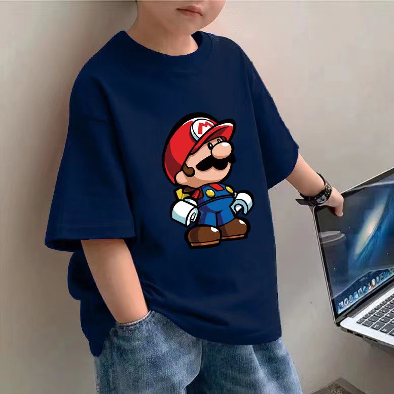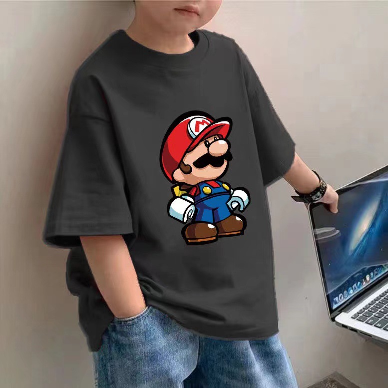 100 면 아동복 소년 티셔츠 여름 새 어린이 반소매 만화 탑 느슨한 중대형 어린이 반소매 티셔츠