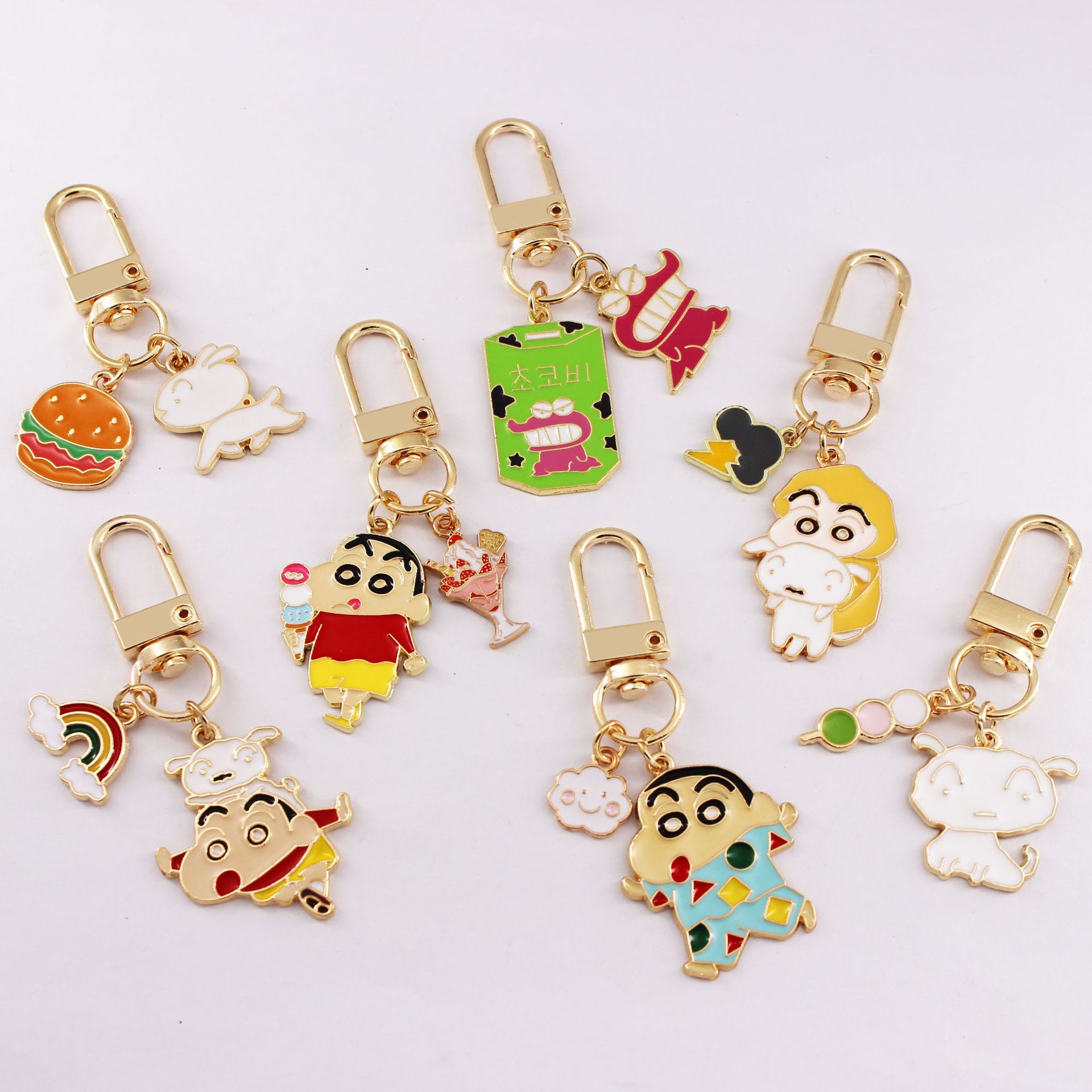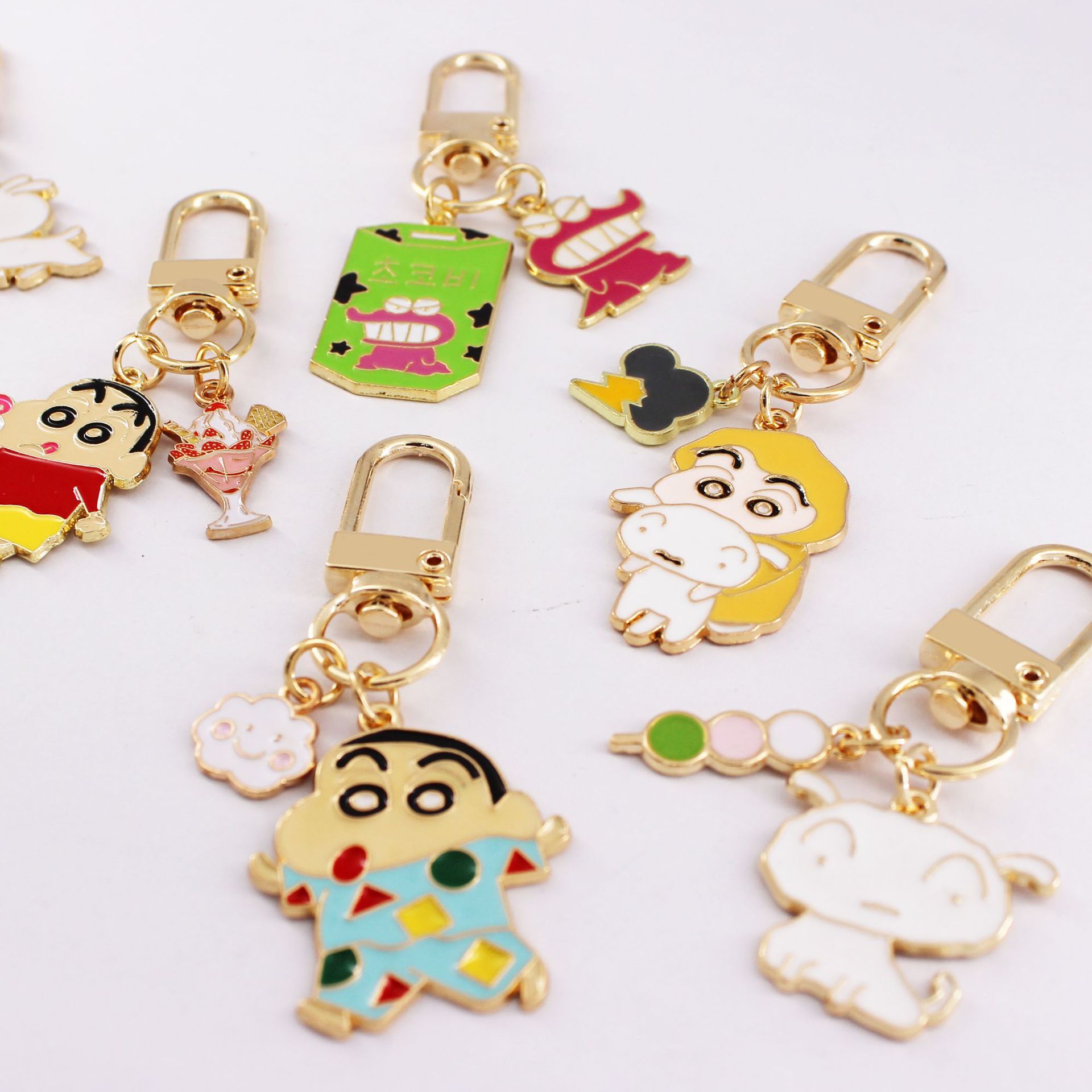 일본 만화 크레용 작은 새로운 화이트 메탈 오일 드롭 키 체인 에어 포드 보호 케이스 가방 펜던트 액세서리스토어 가기